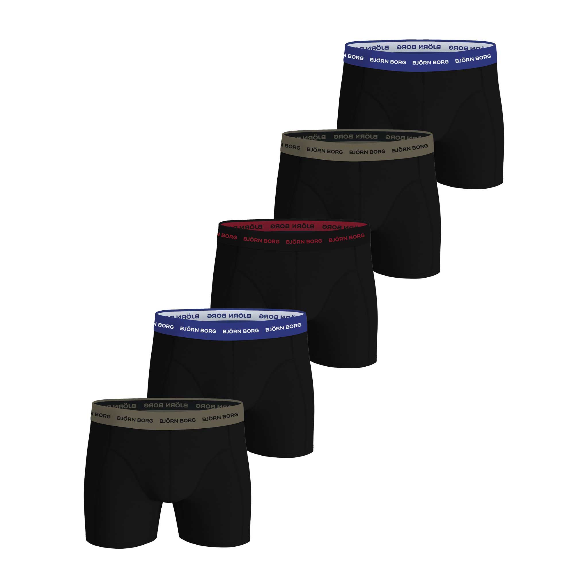 Voordeelpack van Björn Borg met 5 boxers uit de Essential Cotton serie. De Essential boxershorts zijn gemaakt van lichter katoen dan de shorts uit de Premium Organic Cotton (Core) serie, maar uitermate geschikt voor alledaags gebruik waarbij je niet al te veel van je boxer eist. De boxers zijn uitgevoerd in diverse kleurcombinaties en beschikken over een elastische heupband met daarop het Björn Borg Logo. Met deze 5-pack kun je weer even vooruit.
