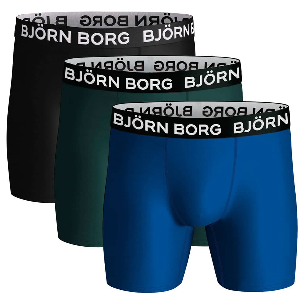 De Performance Serie is speciaal ontworpen voor de sportieve man. Deze high performance shorts zijn gemaakt van gerecycled microfiber op basis van polyester. Microfiber is flexibel, sluit nauw aan op de huid en voert vocht goed af. Perfect voor elke snelle beweging waarbij de stof zich aanpast aan je lichaam. De boxers zijn afgewerkt met platte naden om schuren te voorkomen. De elastische heupband is voorzien van het Björn Borg logo. 3 boxers in een voordeelpack waarmee jij helemaal de man bent in de sportschool.