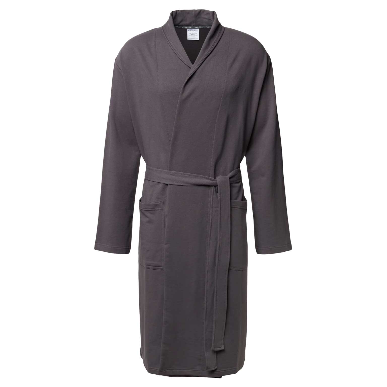 Heren badjas van Calvin Klein, gemaakt van een dunne stof. De stof van de badjas voelt zacht aan door de toevoeging van polyester, waardoor een heerlijke mix ontstaat, die lekker zacht op de huid voelt. Door het slanke design oogt de badjas chique en elegant. Een echte blikvanger dus voor in de sauna. De badjas heeft steekzakken aan de linker en rechterzijde en sluit je met de bijbehorende riem in gelijke stof en kleur.