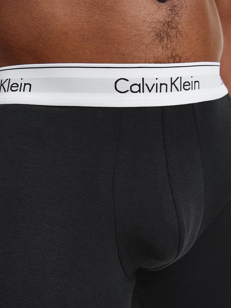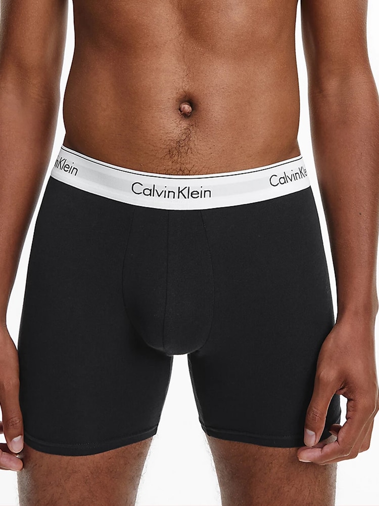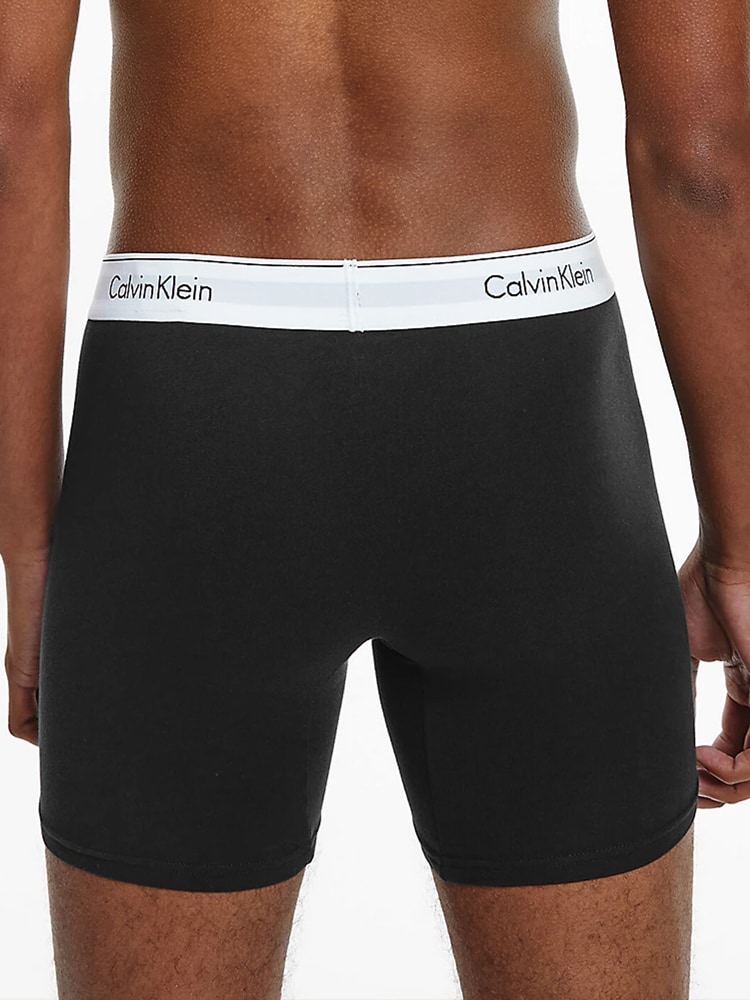 Lot avantageux de 2 boxer briefs de la collection Modern Cotton de Calvin Klein. Les boxers à jambes mi-longues de cette collection sont réalisés en coton jersey avec un peu d'élasthanne donc ils sont durables, respirant et ils se portent comme une seconde peau. Ils ont une taille moyenne, toujours avec le nom de la marque à la ceinture élastique. Disponible en noir/blanc.