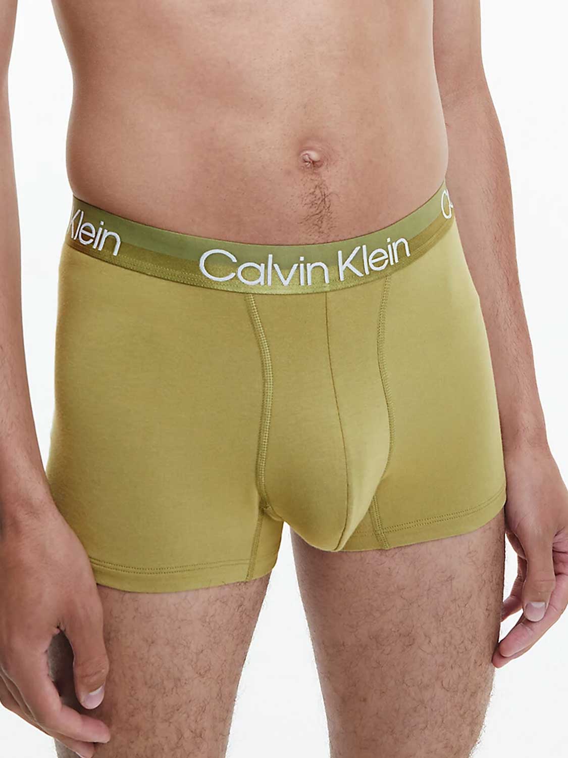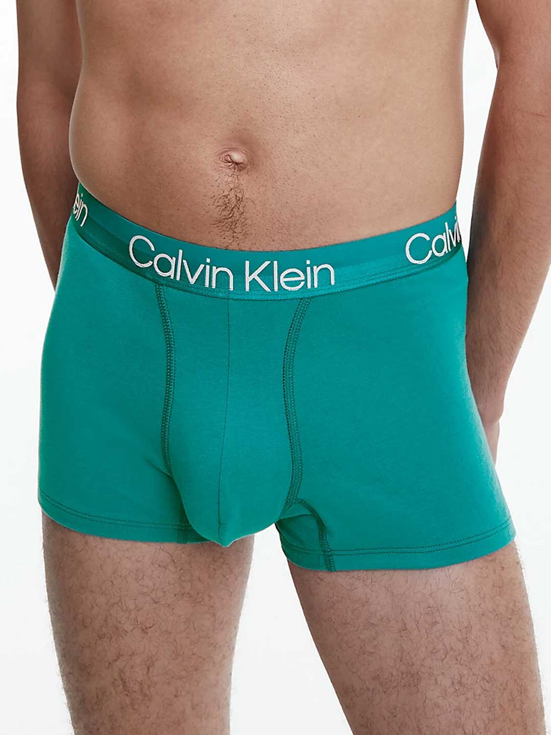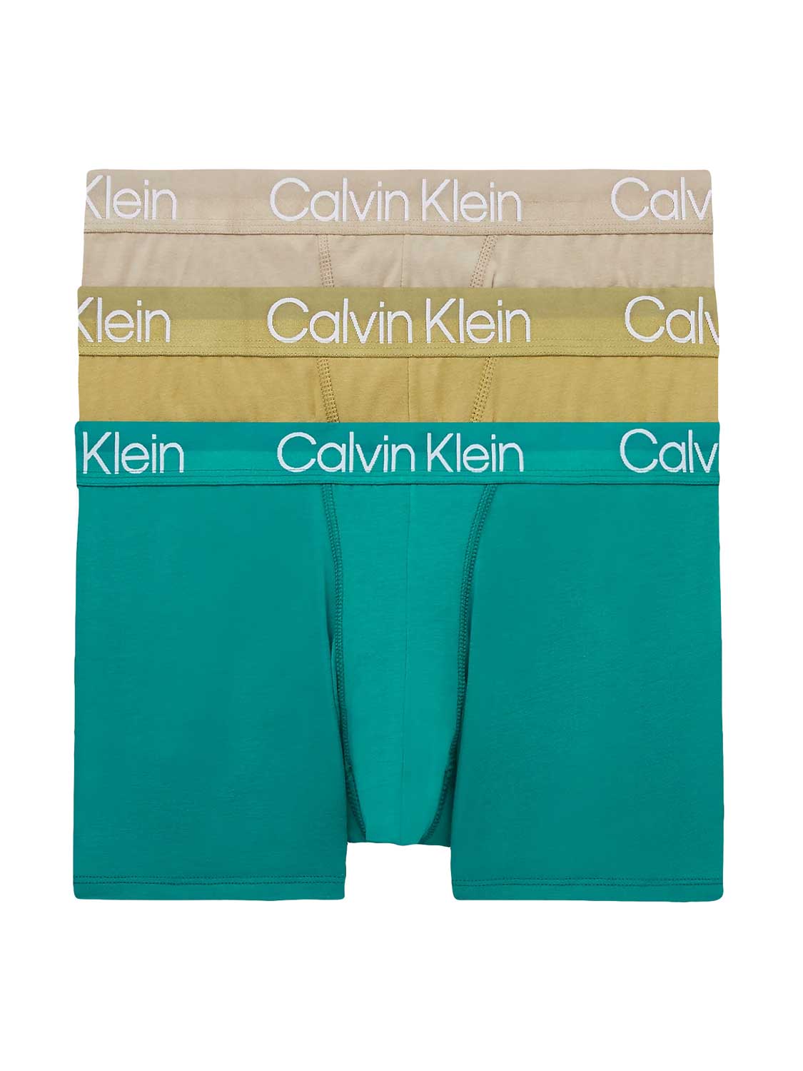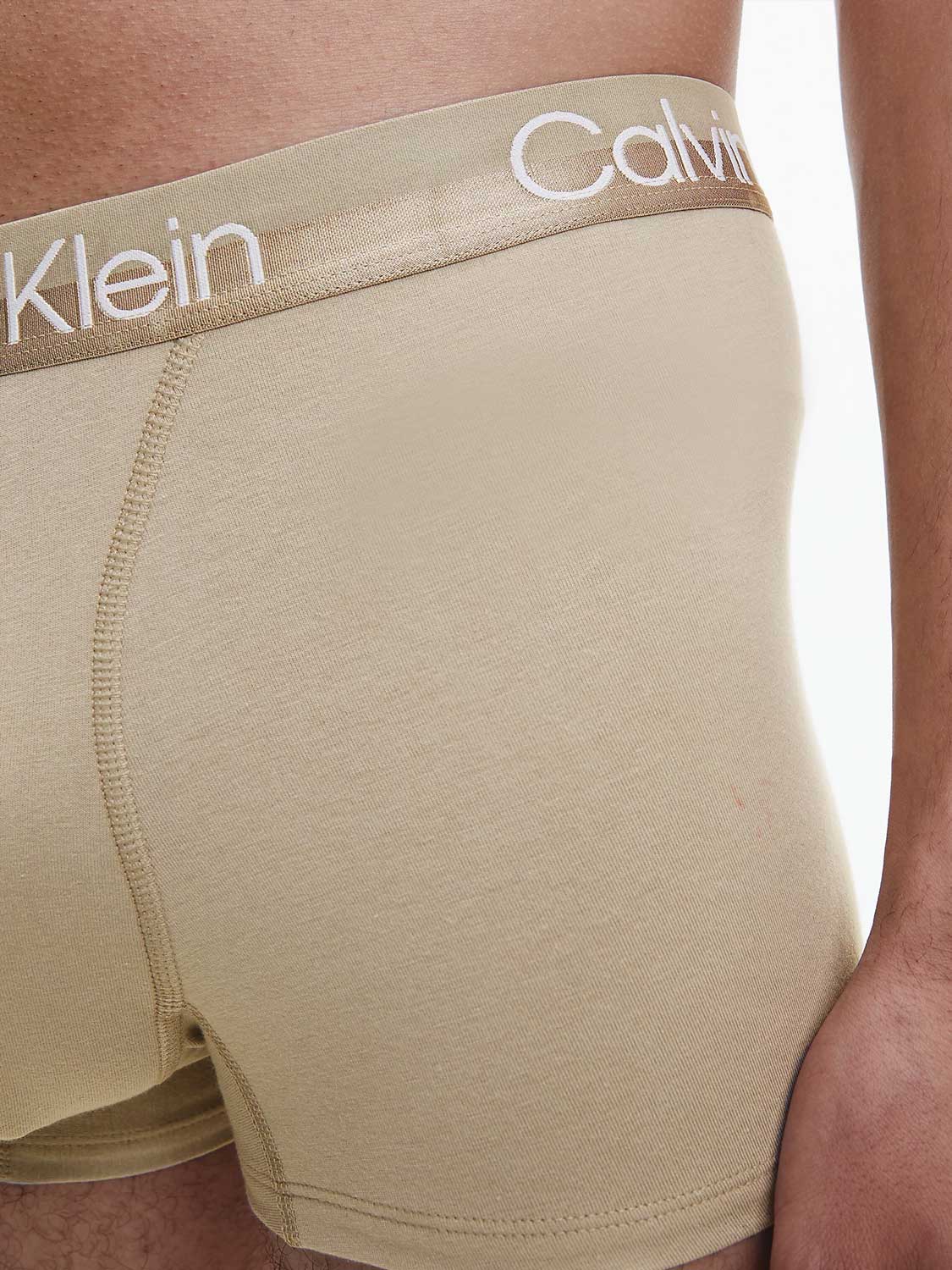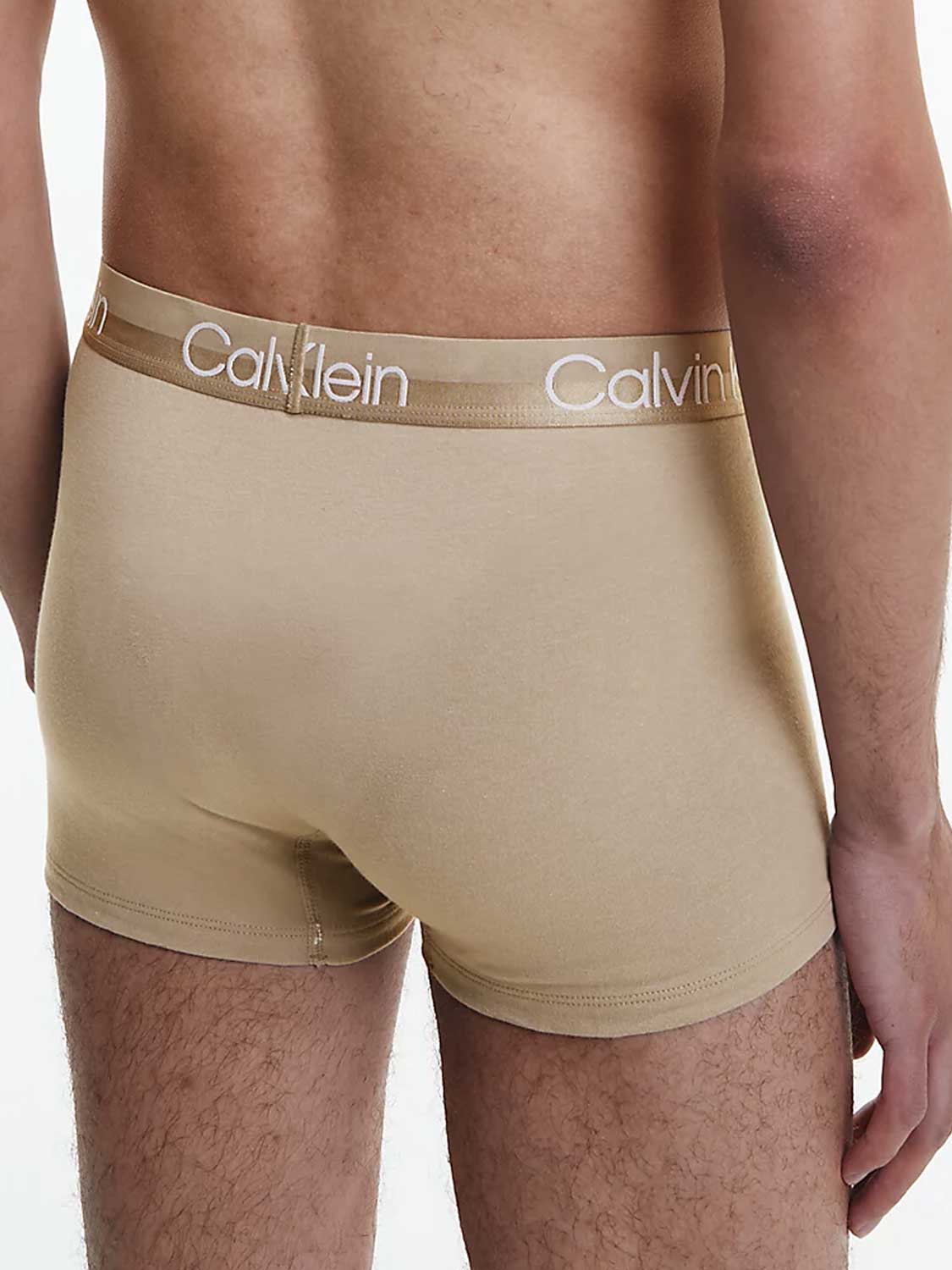 Lot pratique de trois trunks de la gamme 'Modern Structure' de Calvin Klein. Les sous-vêtements de cette collection sont réalisés en polyester et coton recyclé avec un peu d'élasthanne donc ils ont non seulement une allure élégante mais aussi un ajustement parfait et une bonne régulation d'humidité. Disponibles en différentes couleurs unies.