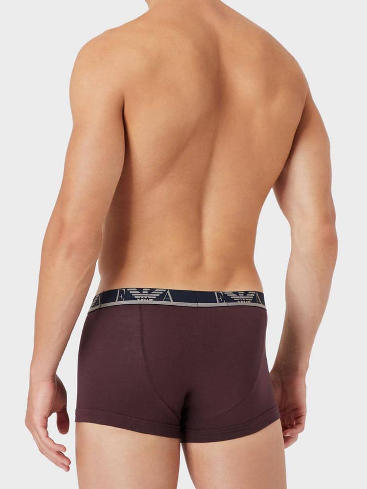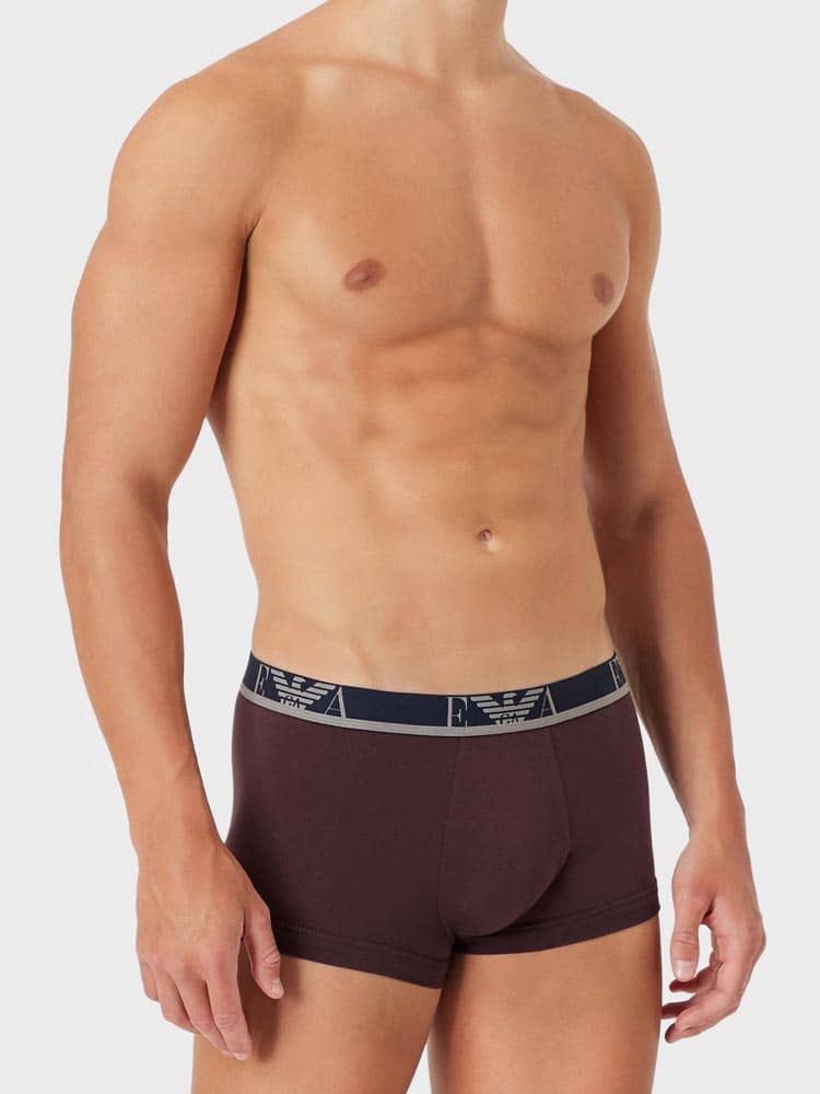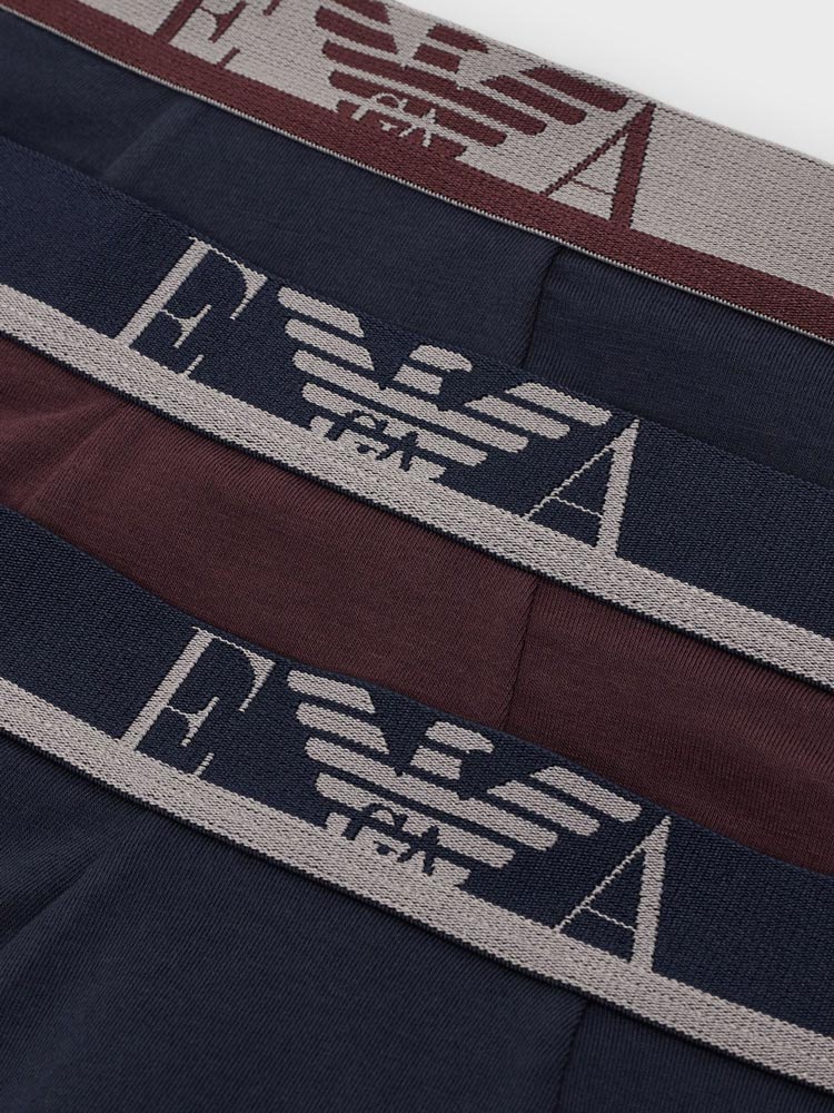 Lot avantageux de trois trunks d'Emporio Armani. Les trunks sont fabriqués en coton stretch donc ils sont hyper doux, respirants et confortables à porter. Une poche découpée et une coupe parfaite avec un soutien supplémentaire pour les fesses assurent le meilleur confort de port. Le lot est disponible en différentes combinaisons de couleurs unies, toujours avec le logo de la marque à la ceinture élastique.