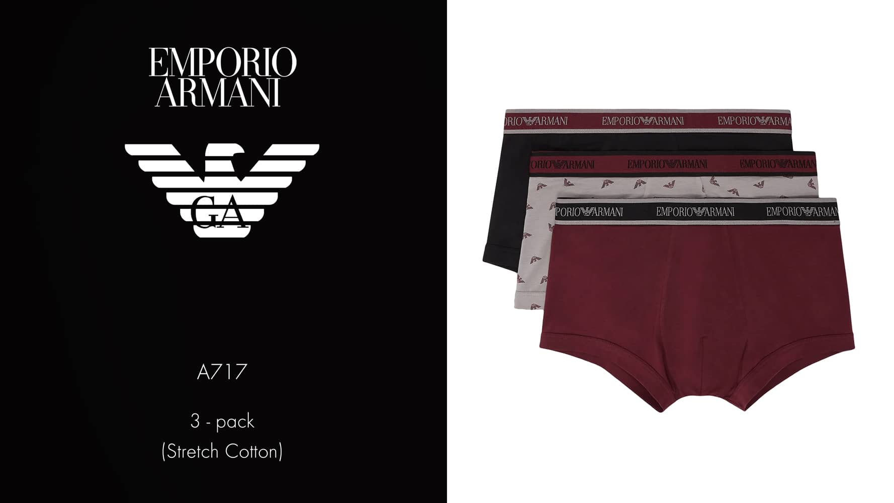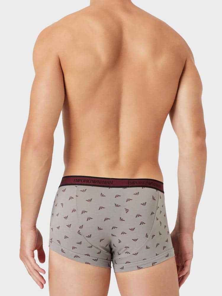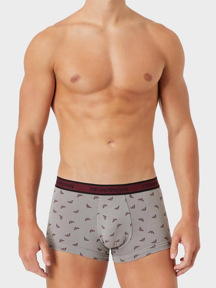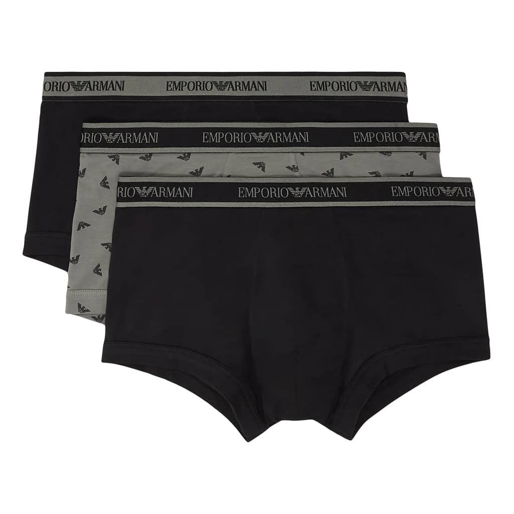 Lot avantageux de trois trunks d'Emporio Armani. Les trunks sont fabriqués en coton stretch donc ils sont hyper doux, respirants et confortables à porter. Une poche découpée et une coupe parfaite avec un soutien supplémentaire pour les fesses assurent le meilleur confort de port. Le lot est disponible en différentes combinaisons de couleurs unies, dont un avec un imprimé de petits aigles de Giorgio Armani.