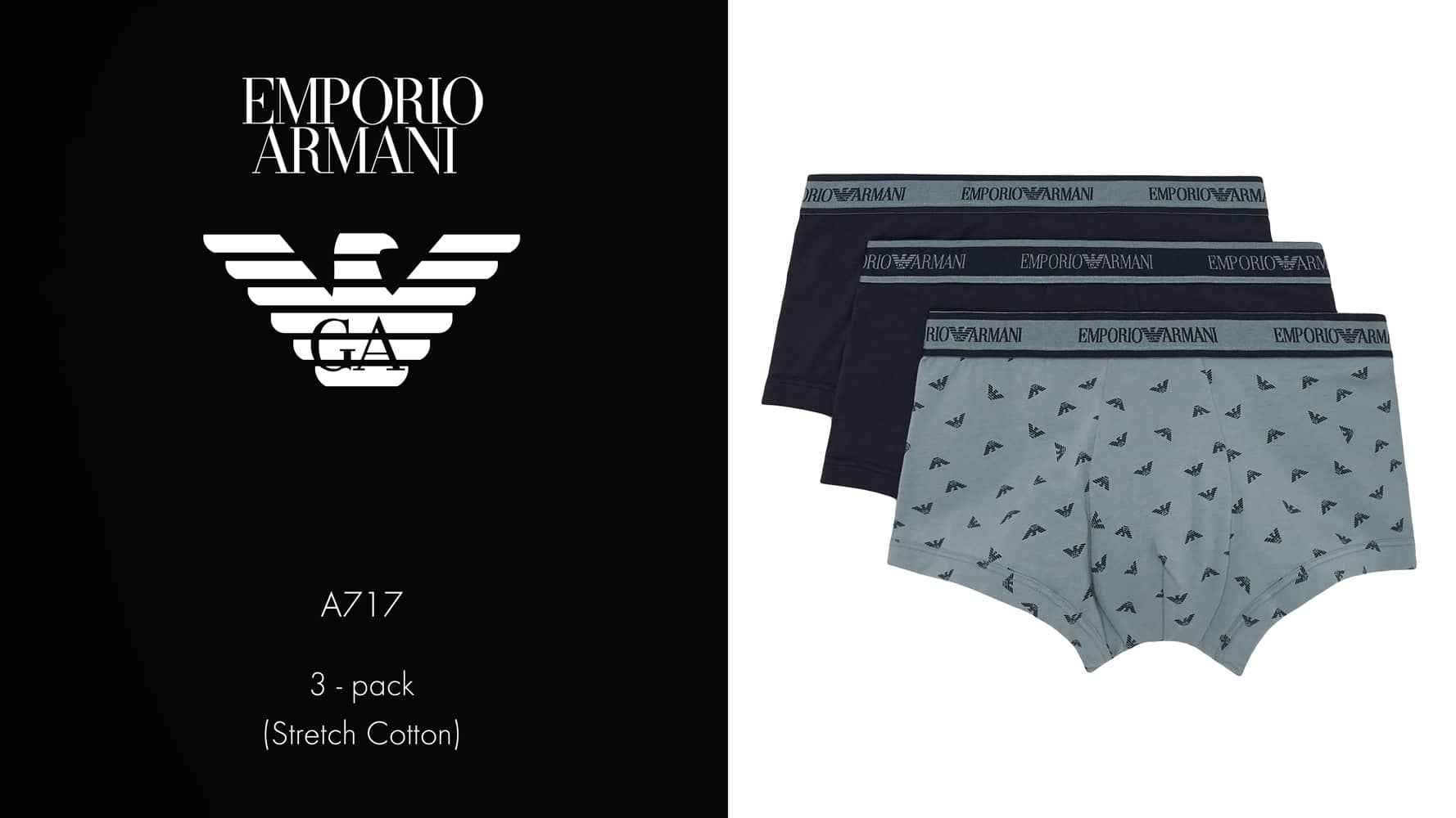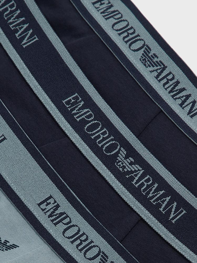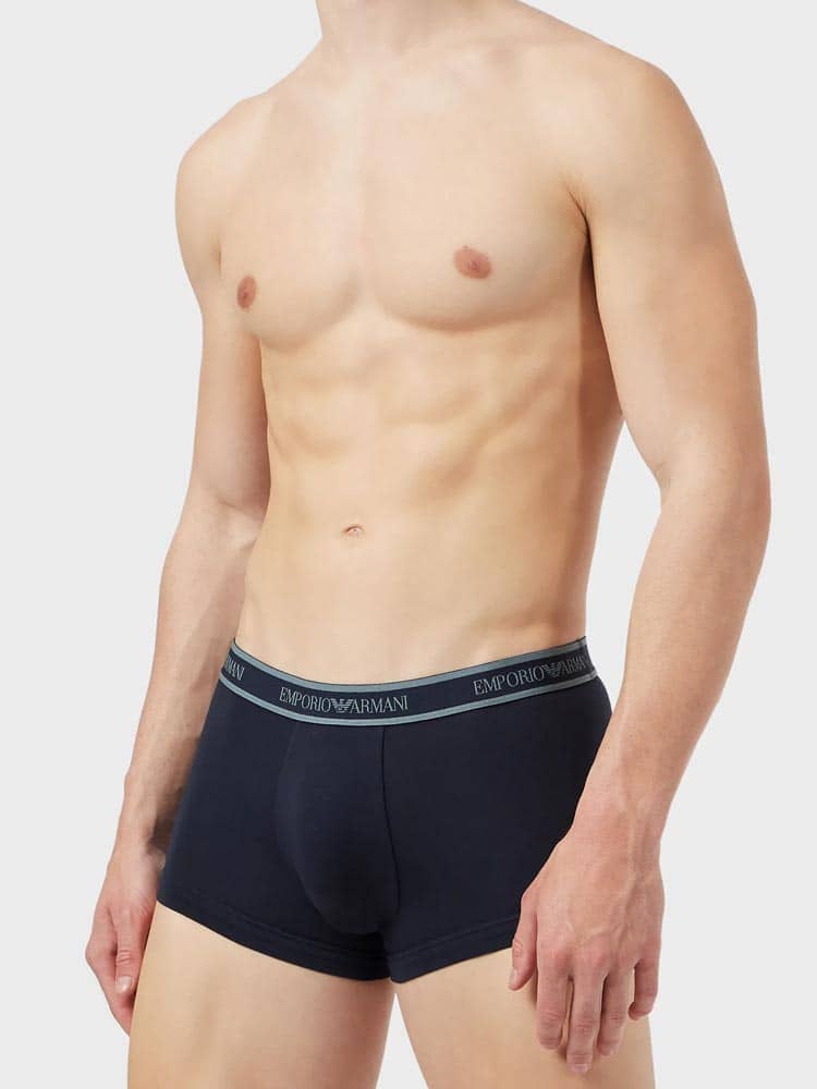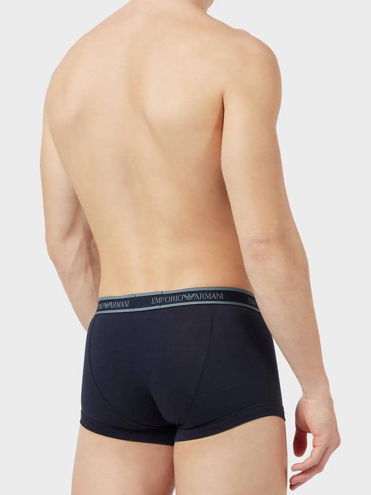 Lot avantageux de trois trunks d'Emporio Armani. Les trunks sont fabriqués en coton stretch donc ils sont hyper doux, respirants et confortables à porter. Une poche découpée et une coupe parfaite avec un soutien supplémentaire pour les fesses assurent le meilleur confort de port. Le lot est disponible en différentes combinaisons de couleurs unies, dont un avec un imprimé de petits aigles de Giorgio Armani.