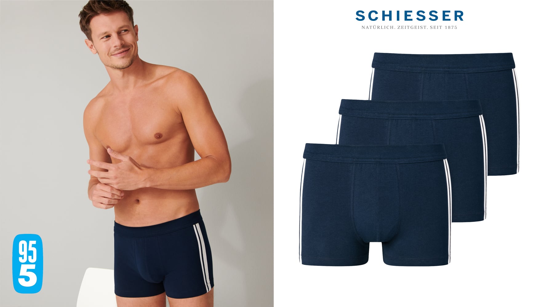 Lot avantageux de 3 shorts qui font parties de la collection 95/5 de SCHIESSER. Les sous-vêtements basiques de cette colletcion populaire sont toujours agréablement doux et ils ont une coupe parfaite. Le boxer short est réalisé en coton bio avec un peu d'élasthanne. Gràce à ce tissu luxueux, le boxer est d'une qualité supérieure et il se porte comme une seconde peau.
