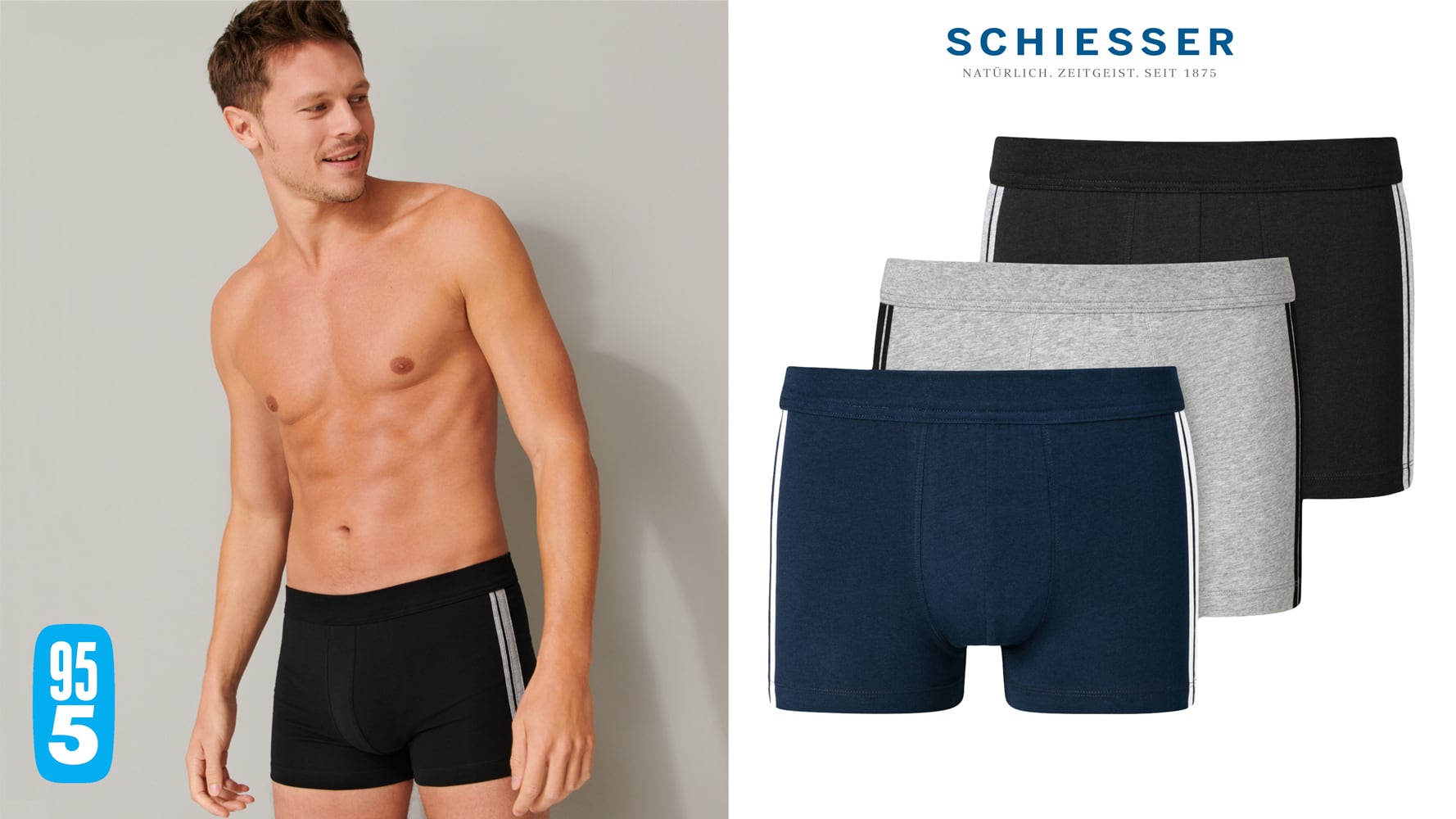 Lot avantageux de 3 shorts qui font parties de la collection 95/5 de SCHIESSER. Les sous-vêtements basiques de cette colletcion populaire sont toujours agréablement doux et ils ont une coupe parfaite. Le boxer short est réalisé en coton bio avec un peu d'élasthanne. Gràce à ce tissu luxueux, le boxer est d'une qualité supérieure et il se porte comme une seconde peau.