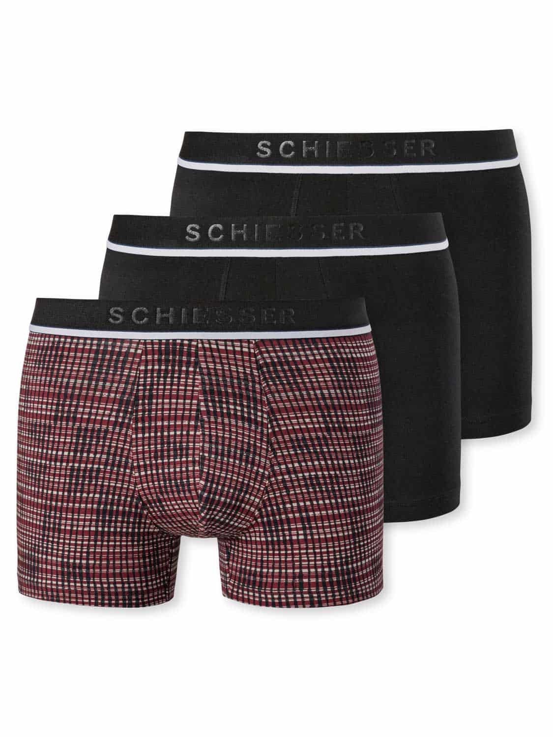 Lot avantageux de 3 shorts qui font partie de la collection 95/5 de SCHIESSER. Les sous-vêtements de cette série sont toujours agréablement doux sur la peau et ils restent parfaitement ajustés. Le boxer est réalisé en coton bio naturel avec un peu d'élasthanne. Gràce à ce tissu jersey simple élastique, le short serré vous offre un confort optimal et il se porte comme une seconde peau. Le lot se compose de deux boxers en couleurs unies et un avec un imprimé graphique.