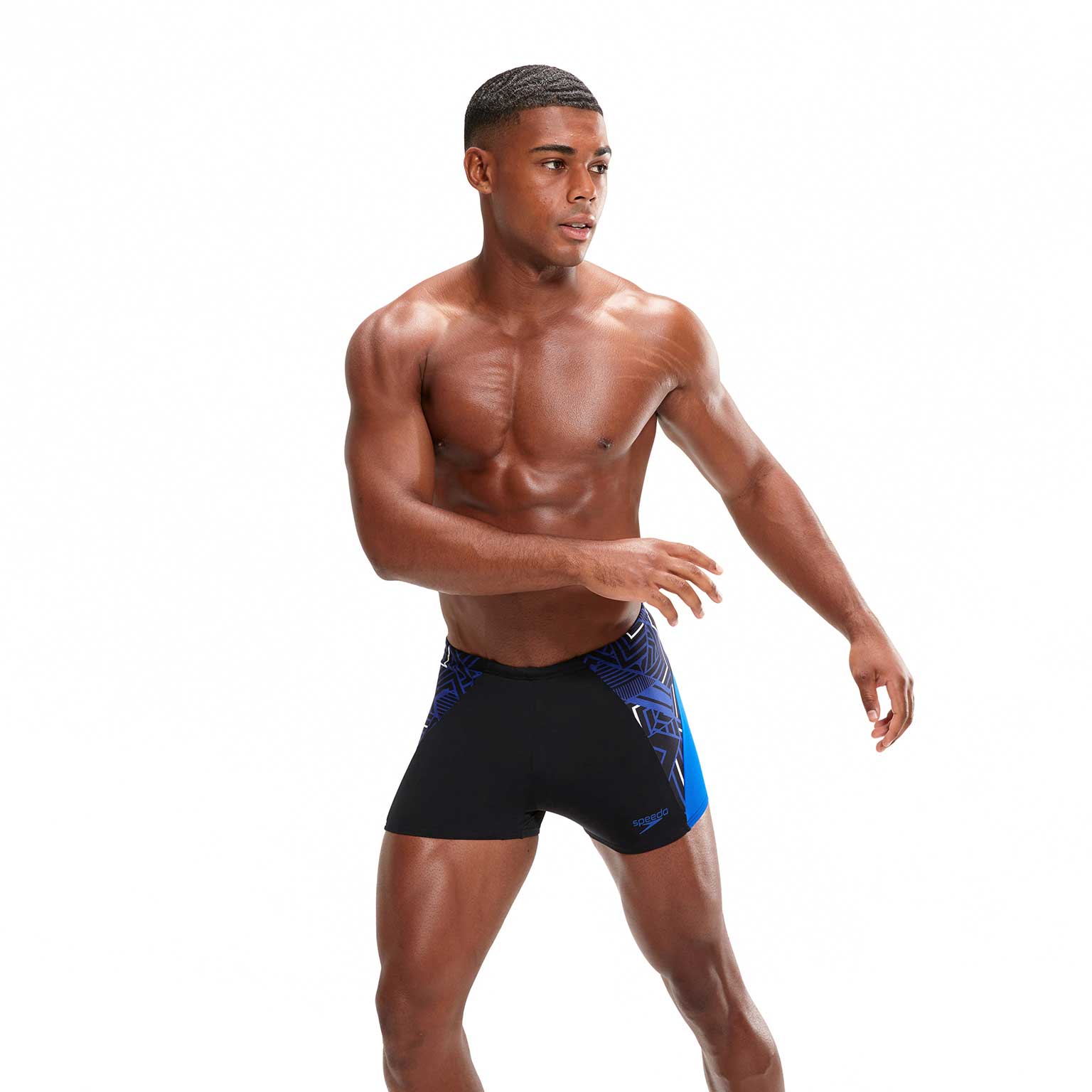 Eco+ Aquashort - Splice de Speedo, parfait pour votre entraînement et doté d'un motif géométrique. Le boxer de bain est fabriqué en Eco Endurance+, un tissu résistant au chlore, qui sèche rapidement et dure beaucoup plus longtemps que les maillots de bain ordinaires. Avec le cordon de serrage à l'intérieur de la taille, vous pouvez ajuster parfaitement le maillot à votre taille. Eco Endurance+ est fabriqué à partir de matériaux recyclés.