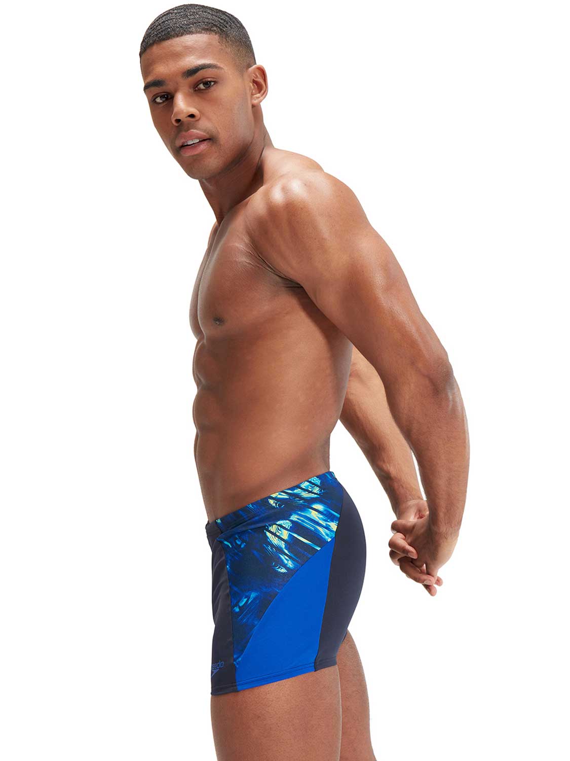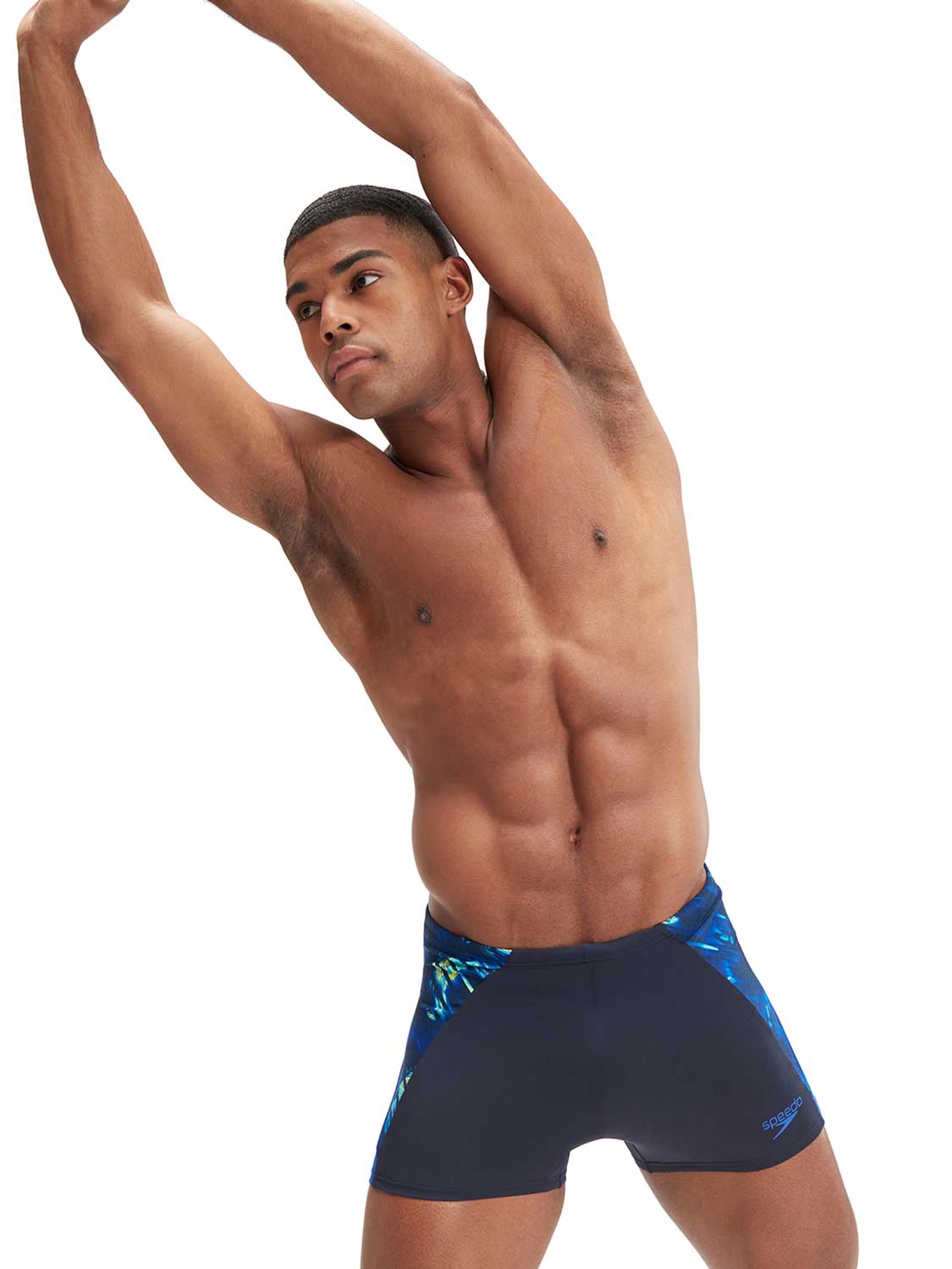 Eco+ Aquashort - Splice de Speedo, parfait pour votre entraînement et doté d'un motif géométrique. Le boxer de bain est fabriqué en Eco Endurance+, un tissu résistant au chlore, qui sèche rapidement et dure beaucoup plus longtemps que les maillots de bain ordinaires. Avec le cordon de serrage à l'intérieur de la taille, vous pouvez ajuster parfaitement le maillot à votre taille. Eco Endurance+ est fabriqué à partir de matériaux recyclés.