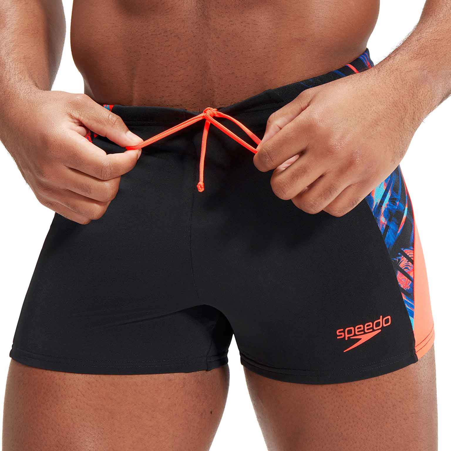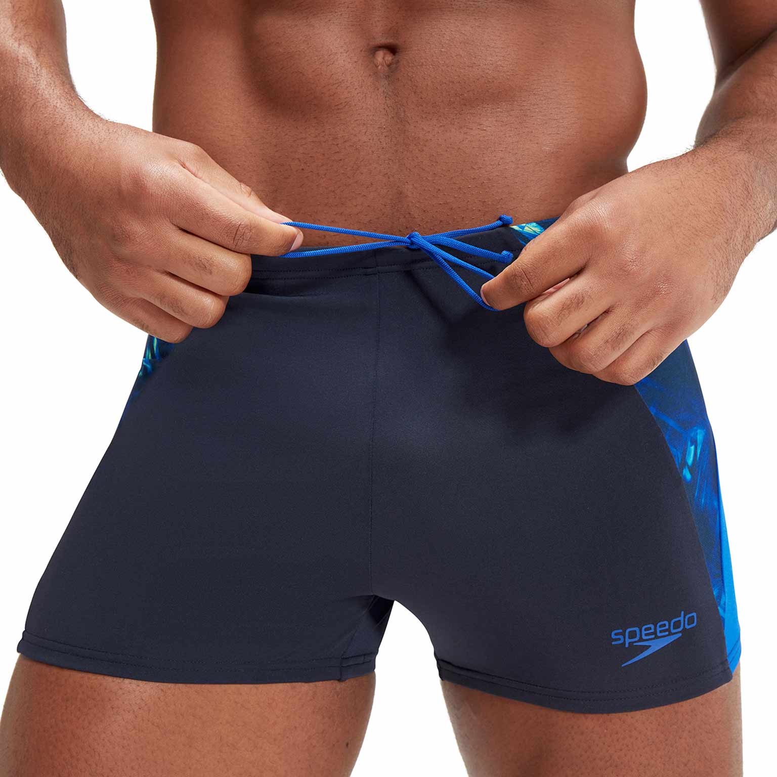 Eco+ Aquashort - Splice de Speedo, parfait pour votre entraînement et doté d'un motif géométrique. Le boxer de bain est fabriqué en Eco Endurance+, un tissu résistant au chlore, qui sèche rapidement et dure beaucoup plus longtemps que les maillots de bain ordinaires. Avec le cordon de serrage à l'intérieur de la taille, vous pouvez ajuster parfaitement le maillot à votre taille. Eco Endurance+ est fabriqué à partir de matériaux recyclés.