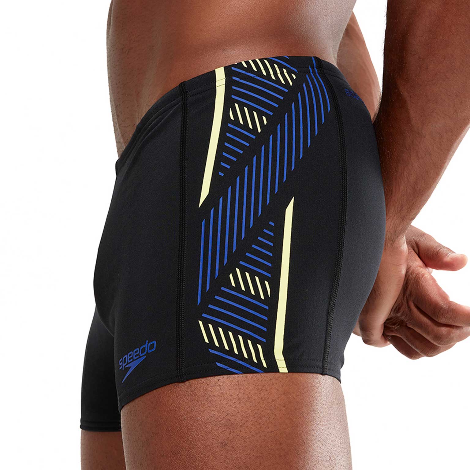 Eco+ Aquashort - Tech Panel de Speedo, parfait pour votre entraînement et doté d'un motif géométrique. Le boxer de bain est fabriqué en Eco Endurance+, un tissu résistant au chlore, qui sèche rapidement et dure beaucoup plus longtemps que les maillots de bain ordinaires. Avec le cordon de serrage à l'intérieur de la taille, vous pouvez ajuster parfaitement le maillot à votre taille. Eco Endurance+ est fabriqué à partir de matériaux recyclés.