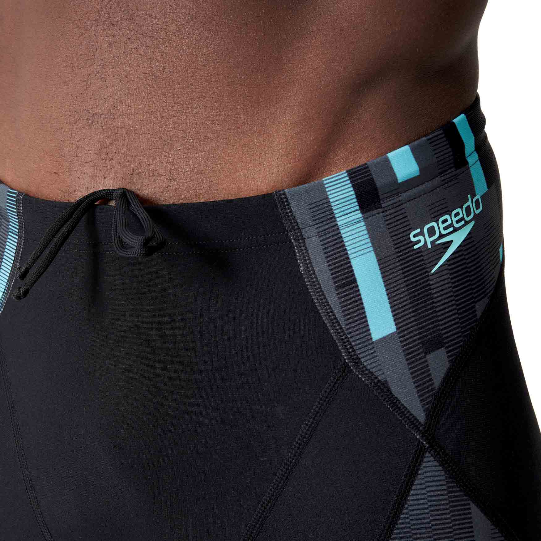 Eco+ jammer Compression de Speedo, parfait pour votre entraînement et doté d'un imprimé géométrique. Le boxer de bain long est fabriqué en Eco Endurance+ Max, un tissu résistant au chlore, qui sèche rapidement et dure beaucoup plus longtemps que les maillots de bain ordinaires. La ceinture en sillicone avec son cordon de serrage plat à l'intérieur, ajuste parfaitement le jammer à votre taille. Grâce à la coupe en V, qui a une doublure en mesh, vous pouvez profiter d'un niveau de confort élévé. Eco Endurance+ Max est fabriqué à partir de matériaux recyclés.