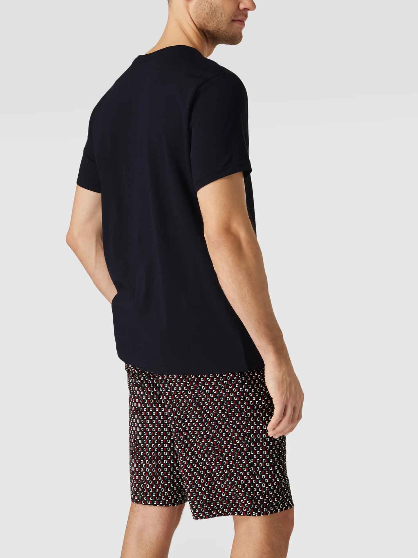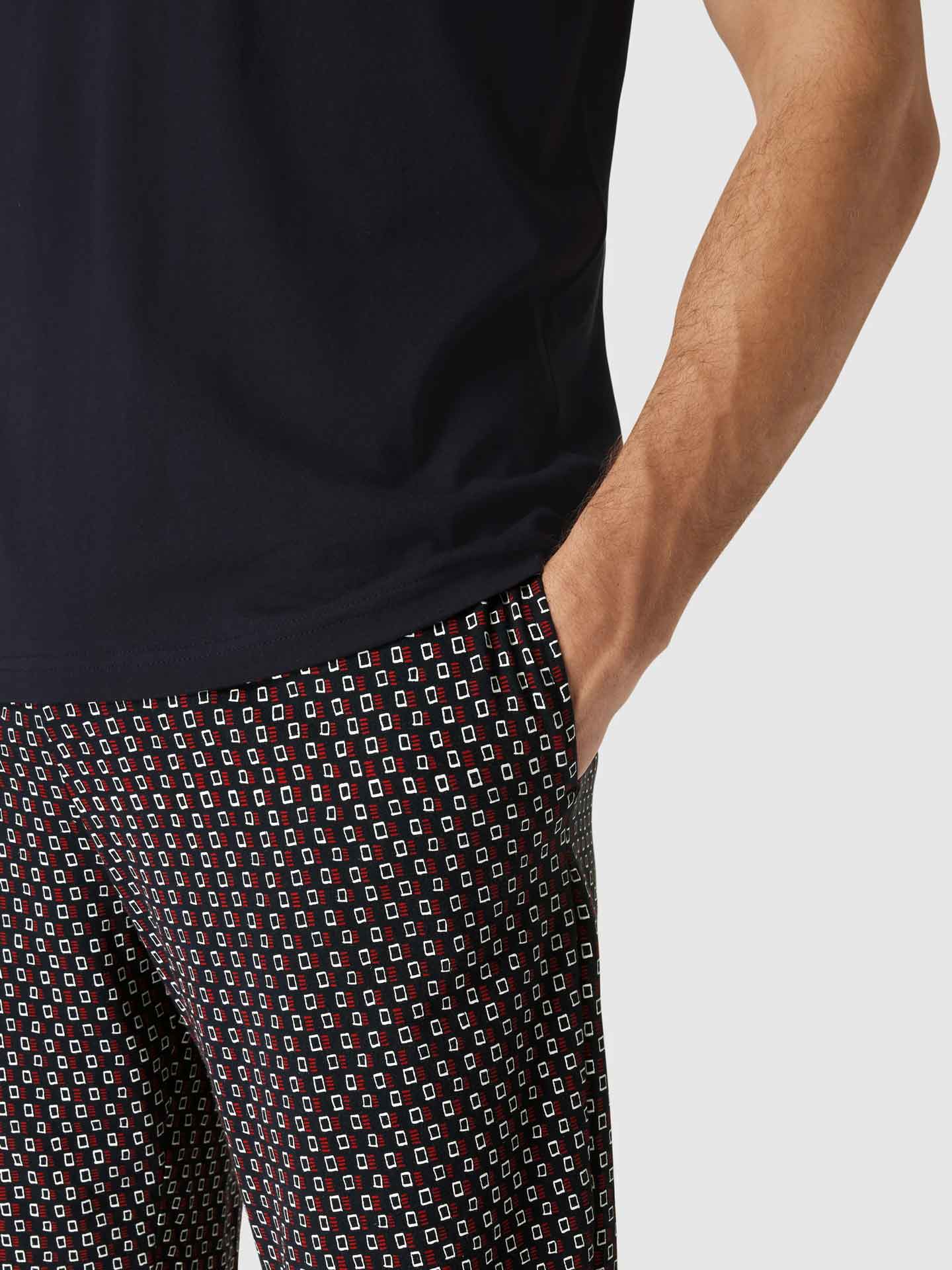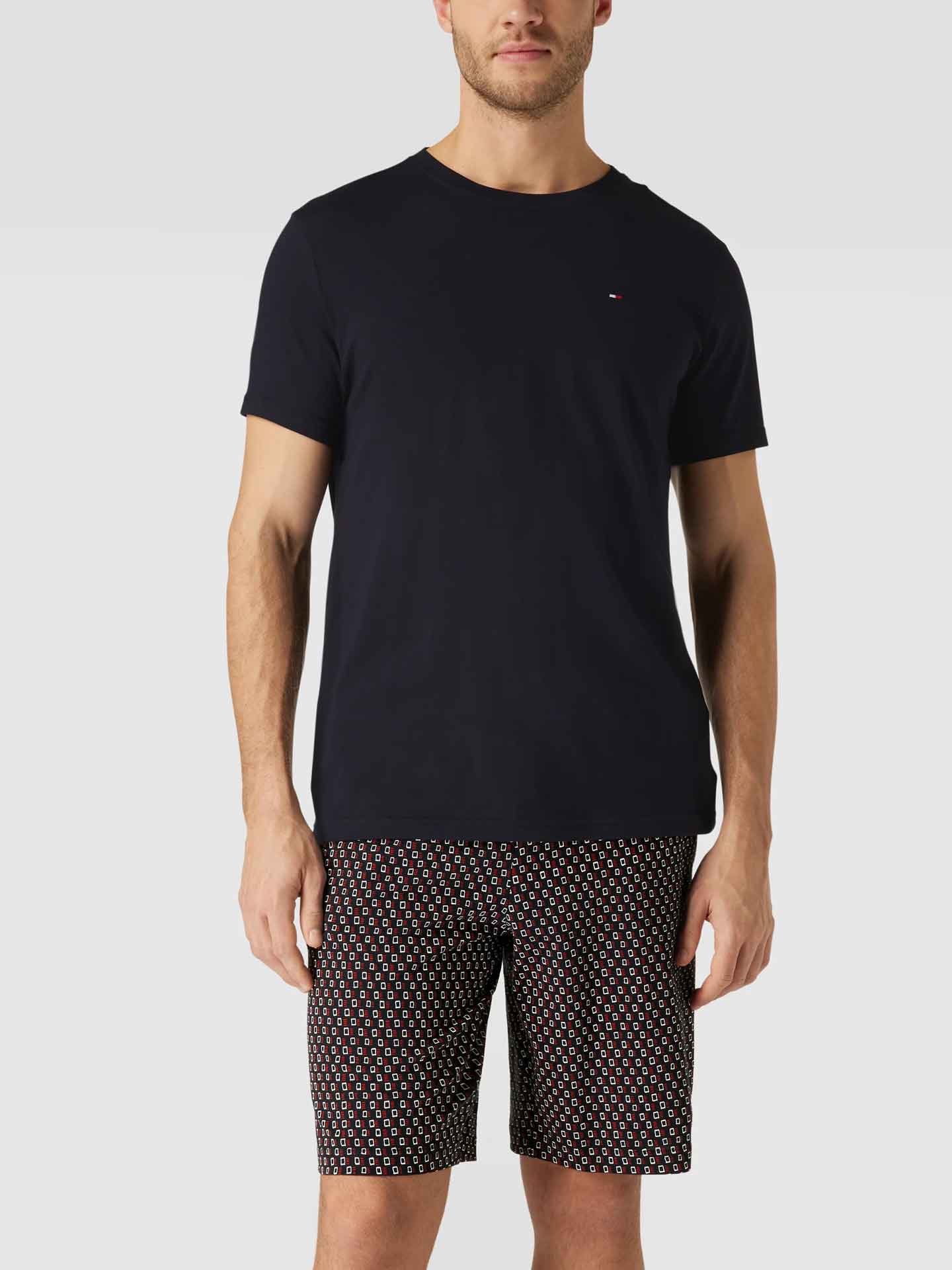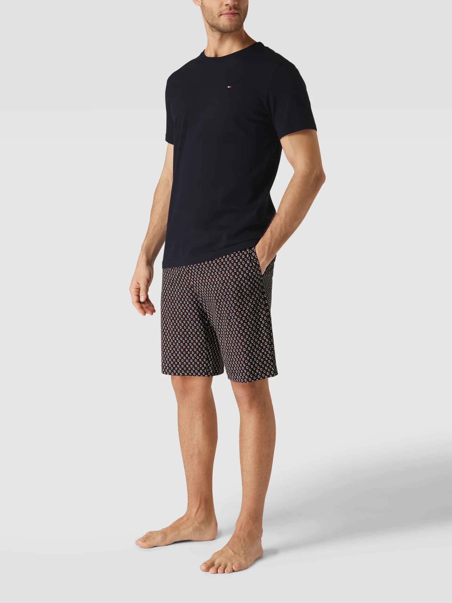 Un ensemble pyjama court de Tommy Hilfiger, caractérisé par sa simplicité. Ce pyjama court est fabriqué en 100% coton, tricoté en jersey pour un léger stretch. L'ensemble se compose d'un t-shirt bleu marine avec un col rond et des manches courtes. Le t-shirt arbore le drapeau Tommy Hilfiger sur la poitrine. Le short présente un imprimé minimaliste frappant et une ceinture élastique pour un ajustement optimal.