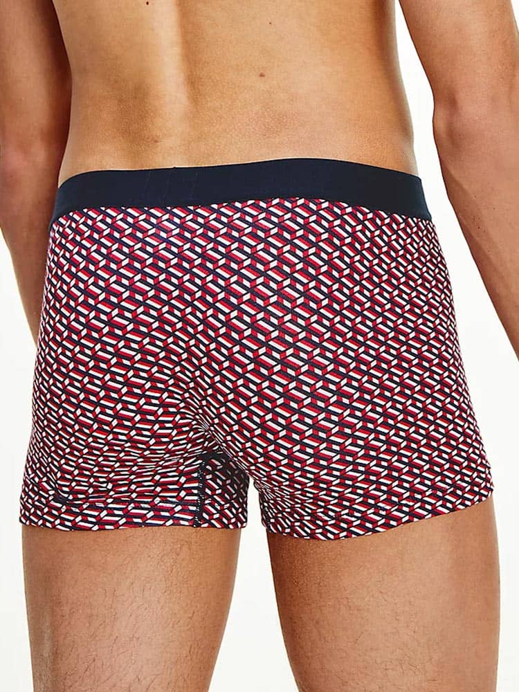 Trunk original à motif imprimé de la collection 'Coton Bio' de Tommy Hilfiger. Les sous-vêtements de cette ligne sont réalisés en coton bio stretch. Le coton bio a été cultivé sans pesticides ni fertilisants chimiques et sans graines génétiquement modifiées. Vous faites donc un choix respectueux de l'environnement et en même temps vous profitez de la qualité supérieure comme vous en avez l'habitude de la marque célèbre. Le boxer à jambes courtes a une coupe parfaite et il est toujours confortable à porter. Le logo de Tommy Hilfiger se trouve à la ceinture élastique en couleur contrastée.