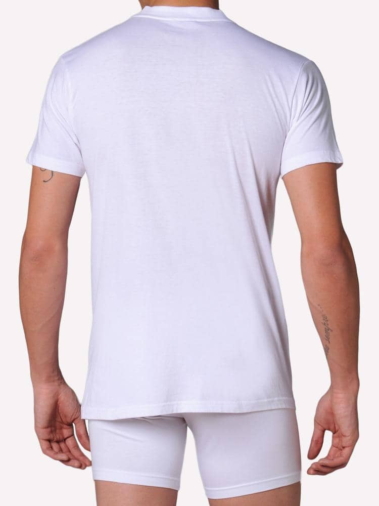 Het HOM HARRO T-shirt met ronde hals en korte mouwen is een klassiek en bijzonder fijn shirt gemaakt van 100% gekamd katoen en wordt veel gedragen onder een overhemd. Door de hoge boord van de neklijn geniet dit shirt bij veel mannen de voorkeur. Het Harro shirt heeft een losse rechte snit, zodat deze vrij rondom het lichaam valt. Doordat de HARRO circulair is gebreiden heeft deze geen naden aan de zijkant om schuren op de huid te voorkomend. Het HARRO shirt is verkrijgbaar in de kleuren zwart en wit en geschikt voor alledaags gebruik.