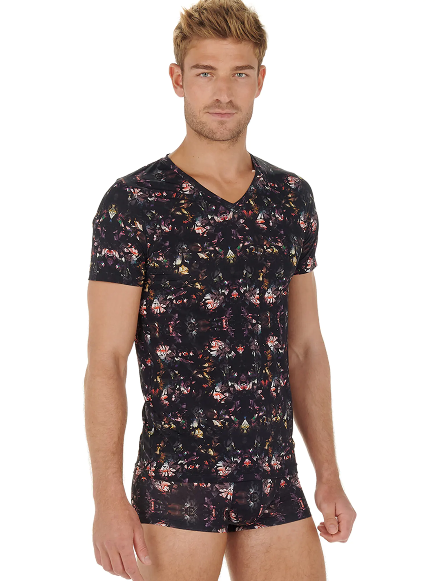 Een innemend bloemenpatroon met de Sebastian serie uit de Temptation collectie, voor de man die de code der verleiding kent. Het shirt is gemaakt van microfiber zodat deze nauw aansluit op de huid. Het shirt heeft een V-hals en is uitgevoerd met de kleurrijke Sebastian bloemenprint op een donkere achtergrond, voor een mysterieuze look. Je kunt het shirt combineren met de Sebastian Trunk of G-string voor een complete set.