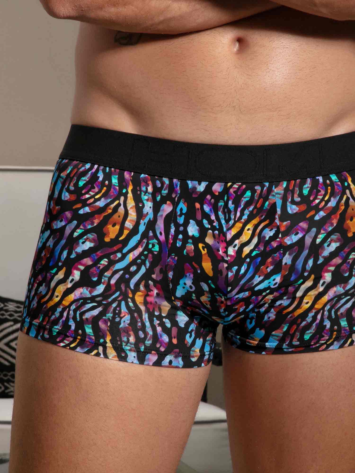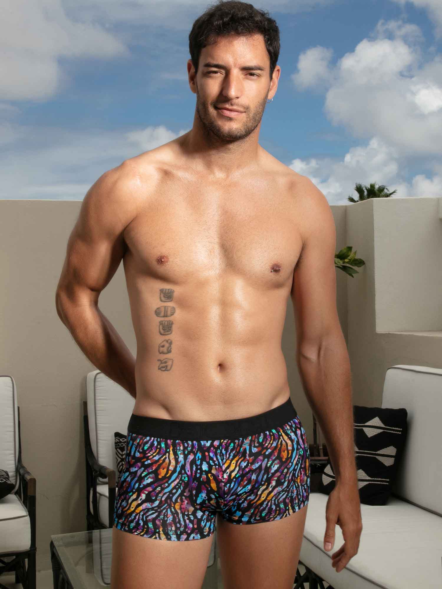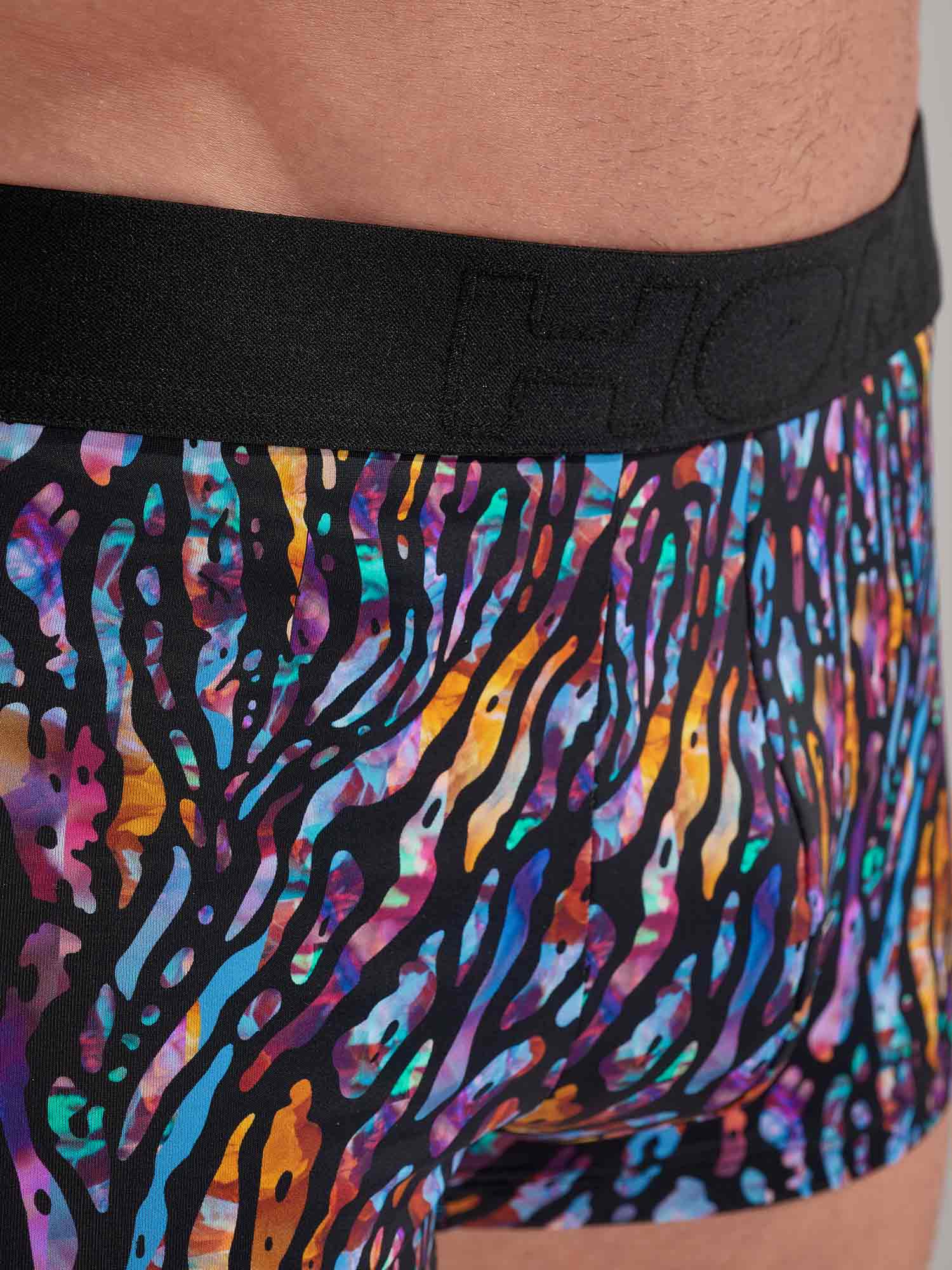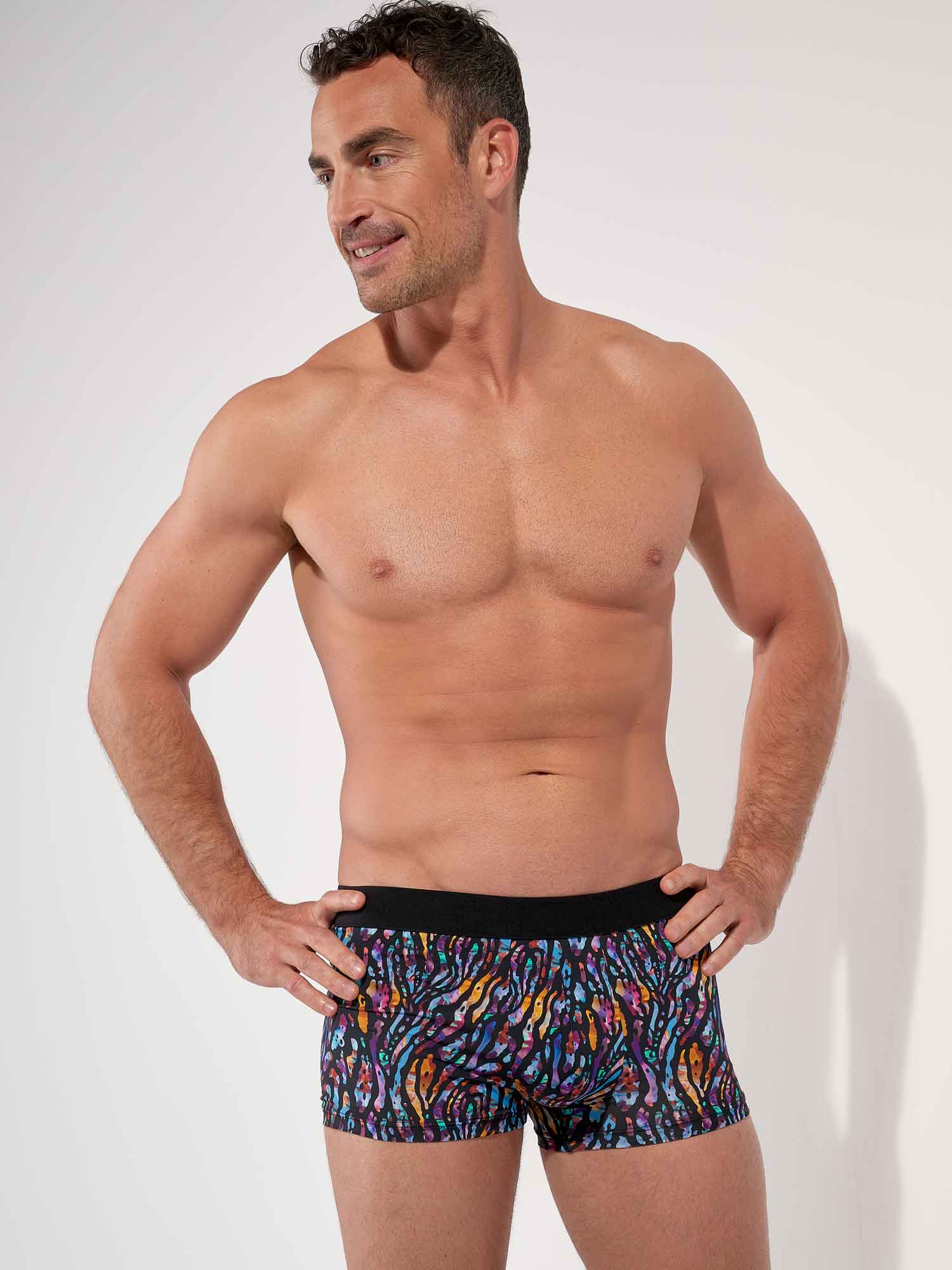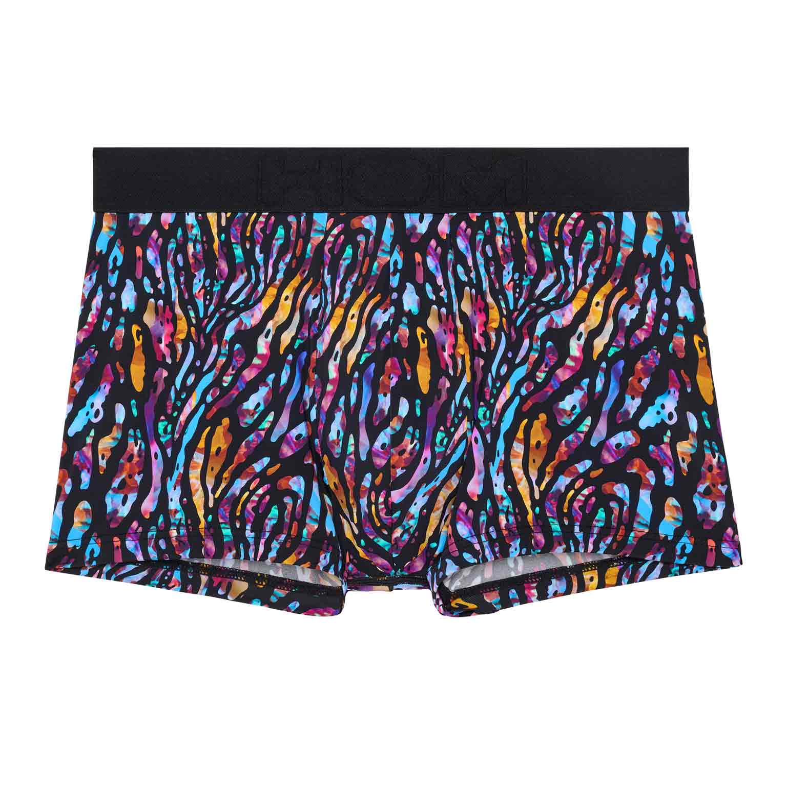 De Miami Trunk brengt tropische energie in een moderne, functionele pasvorm. Het korte trunk model zit hoog op het bovenbeen voor een dynamische look en maximale bewegingsvrijheid. De print combineert een gestileerde zwarte animal tekening met een felgekleurde achtergrond die de flora en fauna van de tropische jungle oproept. De naadloze HOM tailleband biedt stevige ondersteuning zonder te knellen of op te rollen, terwijl het discrete elastische paneel in de beenzoom helpt om het trunk model netjes op zijn plek te houden, voor een strak en comfortabel gevoel de hele dag. Afgewerkt met een afneembaar care label blijft alles zacht en glad op de huid, van ’s ochtends tot ’s avonds.