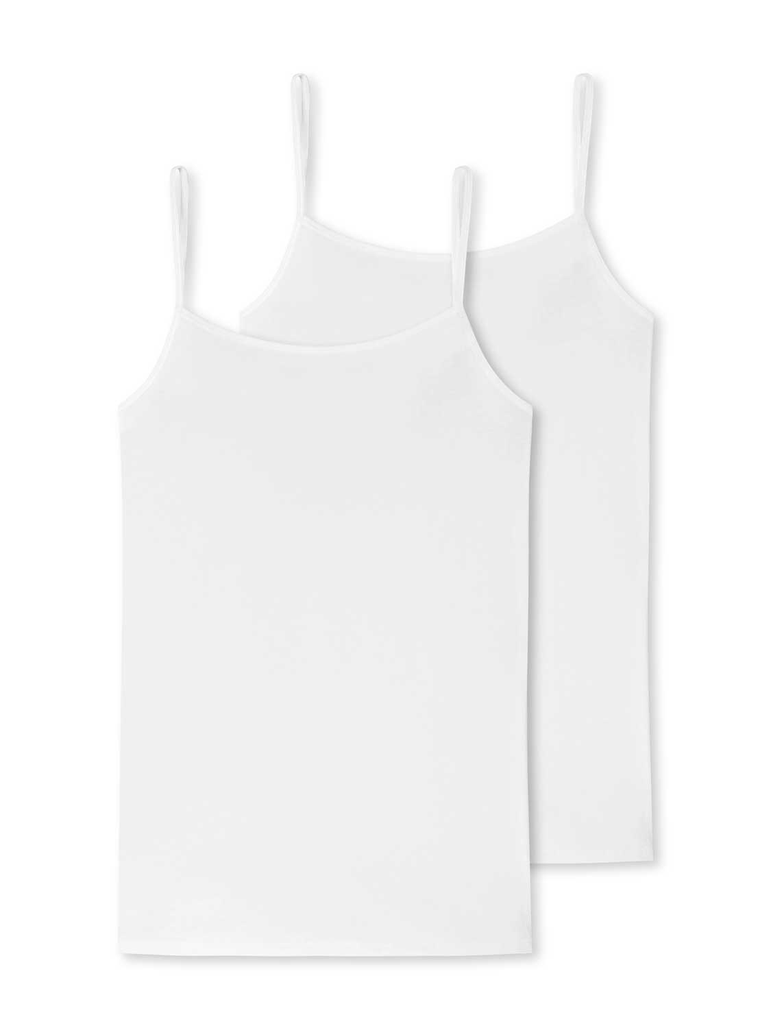 Een voordeelpack met 2 spaghettitops voor dames uit de populaire Schiesser "95/5" serie. De spaghettitops zijn gemaakt van zijdezacht biologisch katoen gemixt met 5% elastaan en gebreiden in een jersey, voor een optimale pasvorm en het beste draagcomfort. Door de speciale productie van Schiesser is het elastaan in de stof zodanig beschermd dat je de tops tot 60 graden kunt wassen zonder dat ze hun pasvorm verliezen. Met deze spaghettitops koop je de kwaliteit die je van Schiesser mag verwachten.