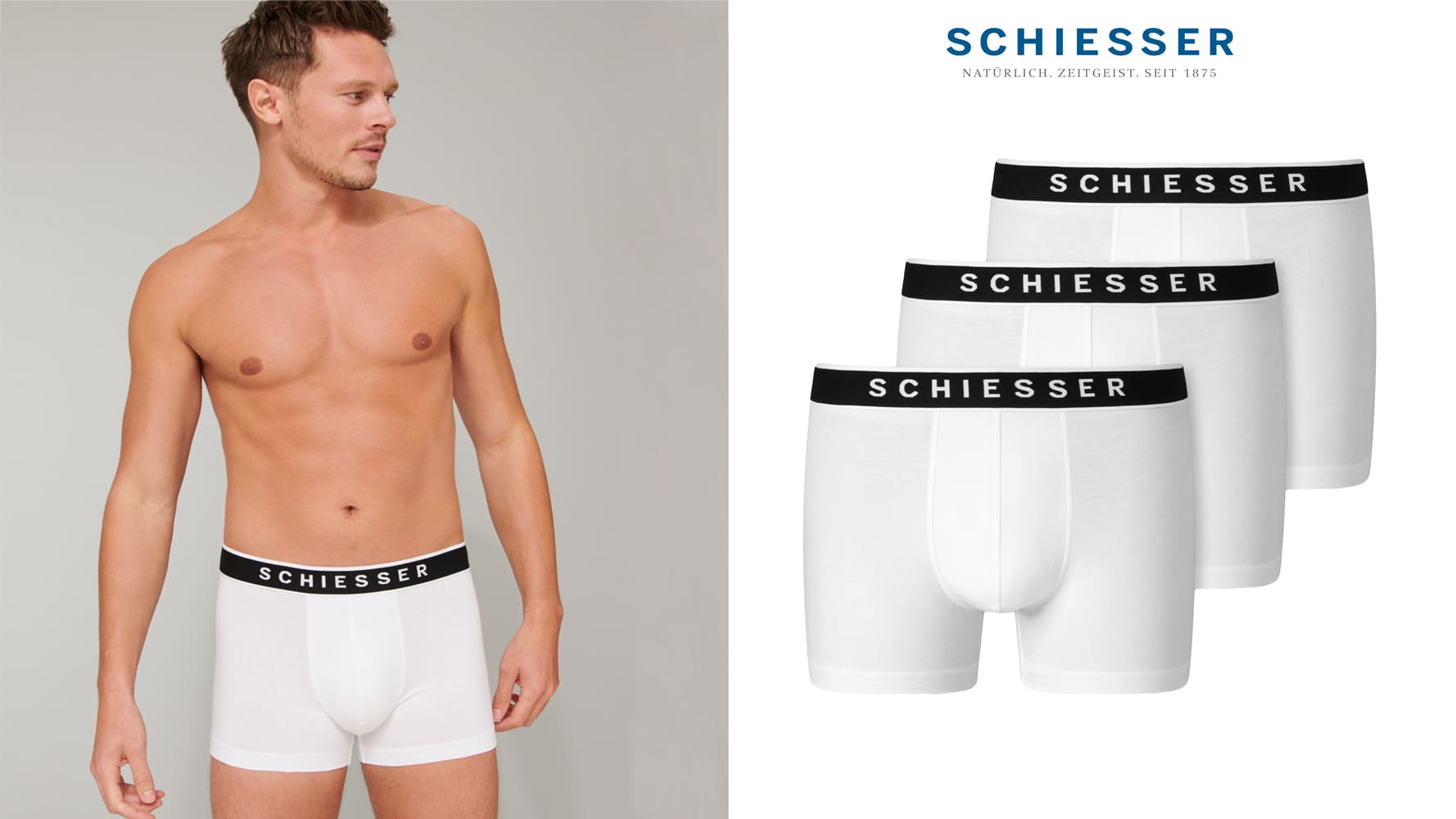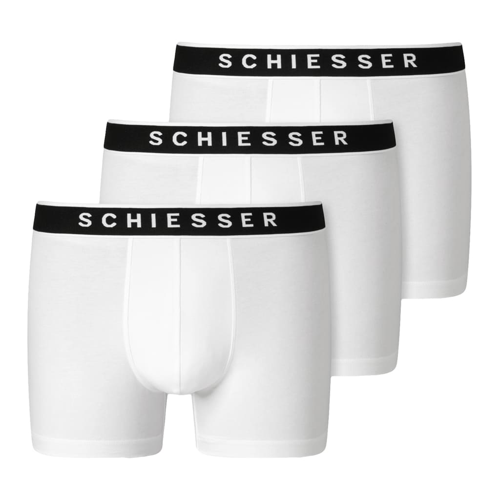 Voordelige 3-pack uit de populaire 95/5 serie van Schiesser. Een ideaal boxershort voor dagelijks gebruik voor elke man. De shorts zijn uitgevoerd met een comfortabele geweven elastische tailleband met een sportieve uitstraling, door een opvallend witte logo en de contrastlijn langs de band. Ze zijn gemaakt van zacht biologisch geproduceerd katoen in een 95/5 kwaliteit voor de perfecte fit. 3 heren boxers voor een mooie prijs in de bekende SCHIESSER-kwaliteit!