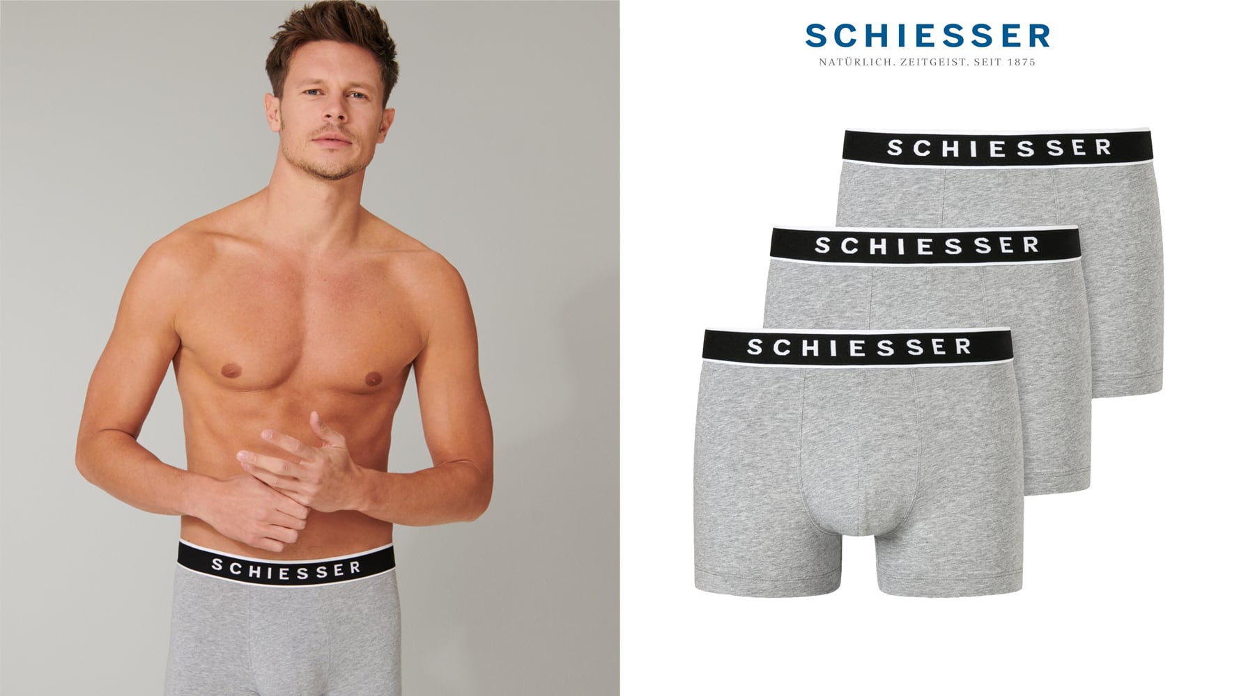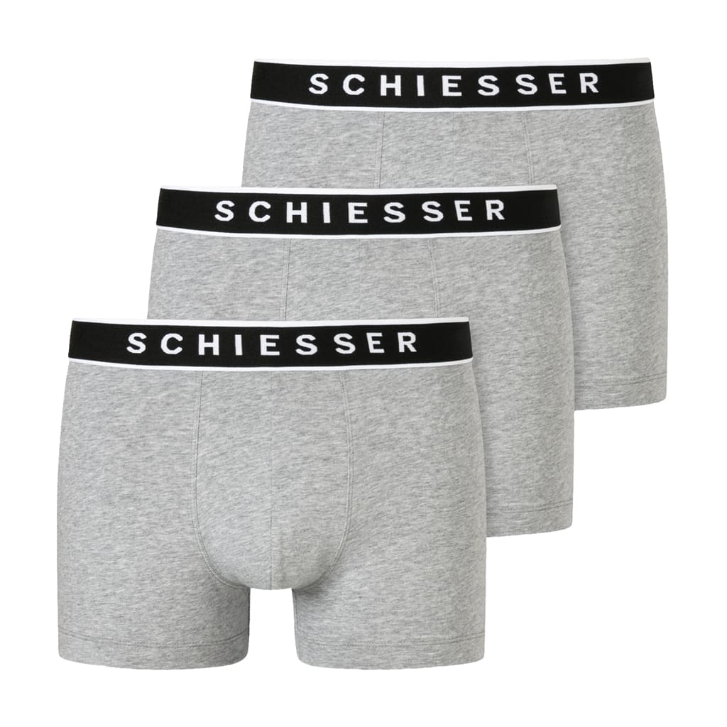 Voordelige 3-pack uit de populaire 95/5 serie van Schiesser. Een ideaal boxershort voor dagelijks gebruik voor elke man. De shorts zijn uitgevoerd met een comfortabele geweven elastische tailleband met een sportieve uitstraling, door een opvallend witte logo en de contrastlijn langs de band. Ze zijn gemaakt van zacht biologisch geproduceerd katoen in een 95/5 kwaliteit voor de perfecte fit. 3 heren boxers voor een mooie prijs in de bekende SCHIESSER-kwaliteit!