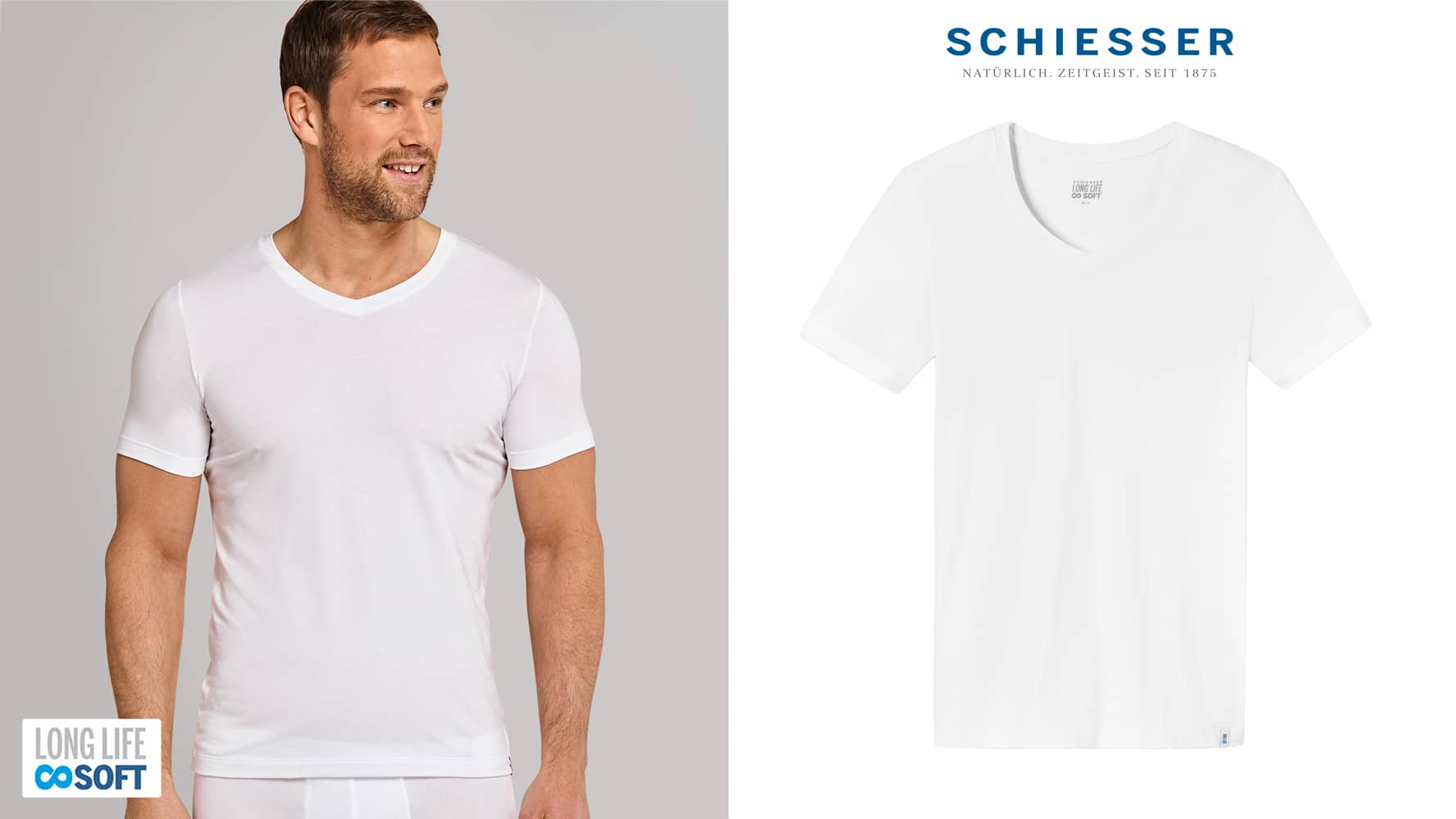 Dit T-shirt uit de SCHIESSER-serie "Long Life Soft" is precies wat mannen die op zoek zijn naar innovatief materiaal met lage pilling in perfecte pasvorm waarderen. De hoogwaardige, elastische single-jersey voelt aangenaam glad en zacht aan op de huid en zorgt met door een gebalanceerde micromodal mix voor een optimaal vochtbeheer. Een zeer duurzaam shirt met een V-hals, dat zich zacht aanpast aan elke beweging van het lichaam en zorgt voor maximaal draagcomfort.