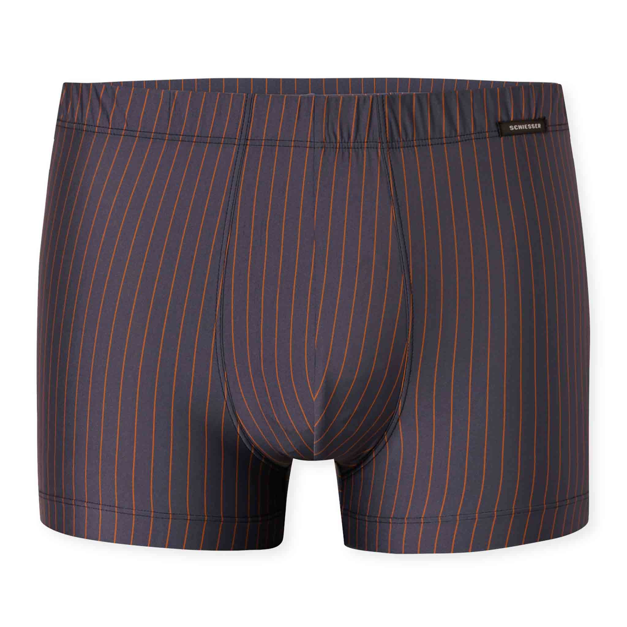 Deze grafietkleurige short uit de Pure Micro-serie van Schiesser bewijst dat duurzaamheid en comfort perfect samen kunnen gaan. De short is gemaakt van gerecycled polyamide en voelt uitzonderlijk zacht en soepel aan op de huid. De bedekte tailleband en het naadloze ontwerp zorgen voor optimaal draagcomfort zonder storende naden. De krijtstreep in oranje geeft een moderne twist aan het klassieke ontwerp. Een stijlvolle en verantwoorde keuze voor de man die bewust kiest voor kwaliteit.