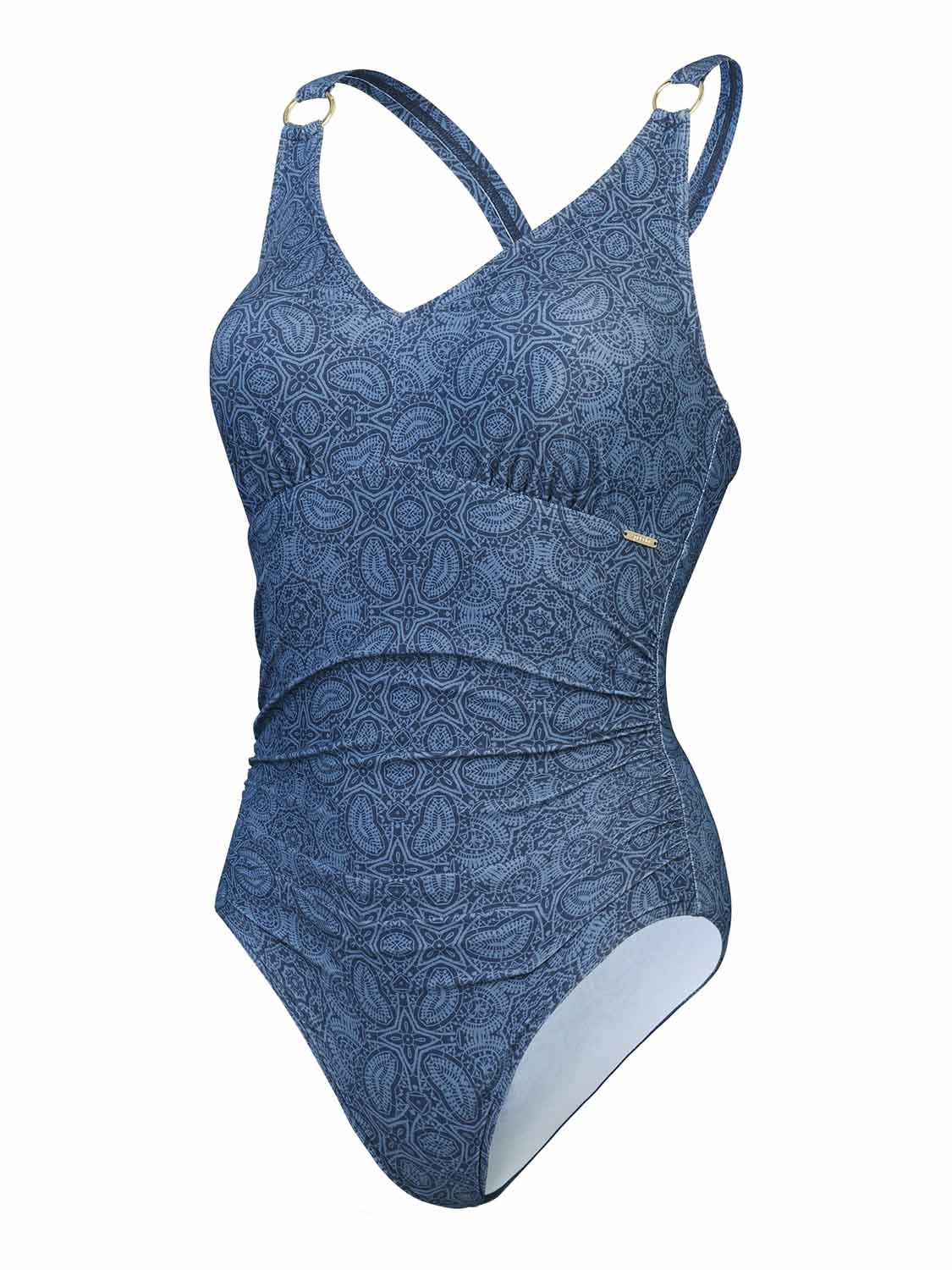 Geniet van een heerlijke vakantielook met dit shaping badpak. Het badpak is uitgevoerd met een V-hals voor een diepe decolleté. Door het shaping effect wordt de vrouwelijke vorm van het lichaam extra benadrukt en kun jij je zeker voelen. Het badpak heeft uitneembare padding voor de borsten, voor wanneer je voldoende hebt aan de verweven borstondersteuning. Met de verstelbare schouderbandjes breng je de cup perfect op maat. Zo kun jij vol vertrouwen genieten van je vrije dagen aan het zwembad.