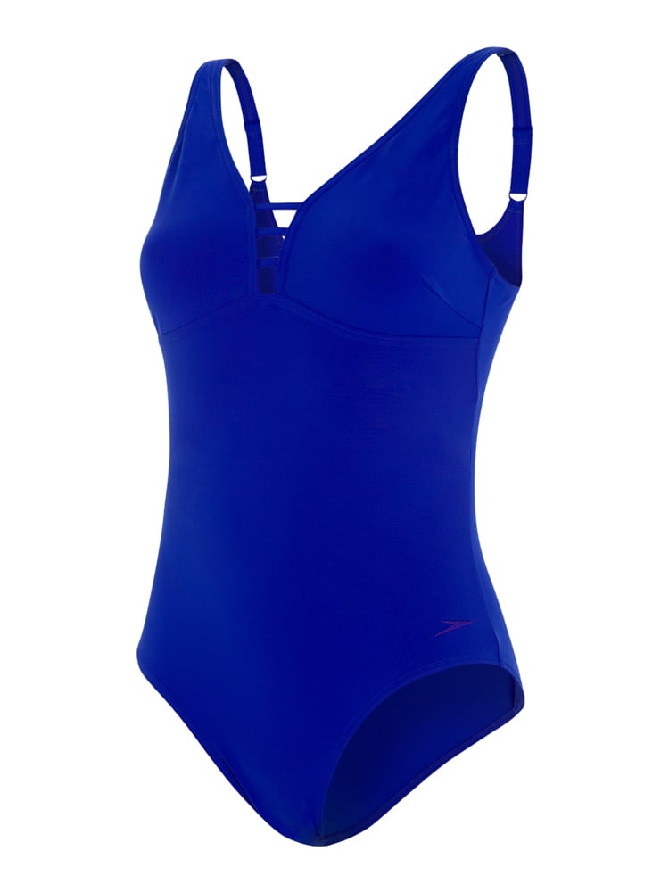 De Sculpture Opalgleam is een elegant badpak wat is gemaakt van Speedo's speciale Sculpture stof. Deze stof zal je lichaam mooi accentueren aangezien het zorgt voor een gestroomlijnd figuur dankzij de lichte buik- en taille correctie. Het badpak is ook geschikt voor vrouwen met een grotere cupmaat: de ondersteuning aan de voorzijde geeft je net dat extra beetje comfort. De Opalgleam heeft een V-hals en een mooi ontwerp met extra bandjes op de borst en rug. De egale blauwe kleur geeft het badpak een stijlvolle uitstraling.