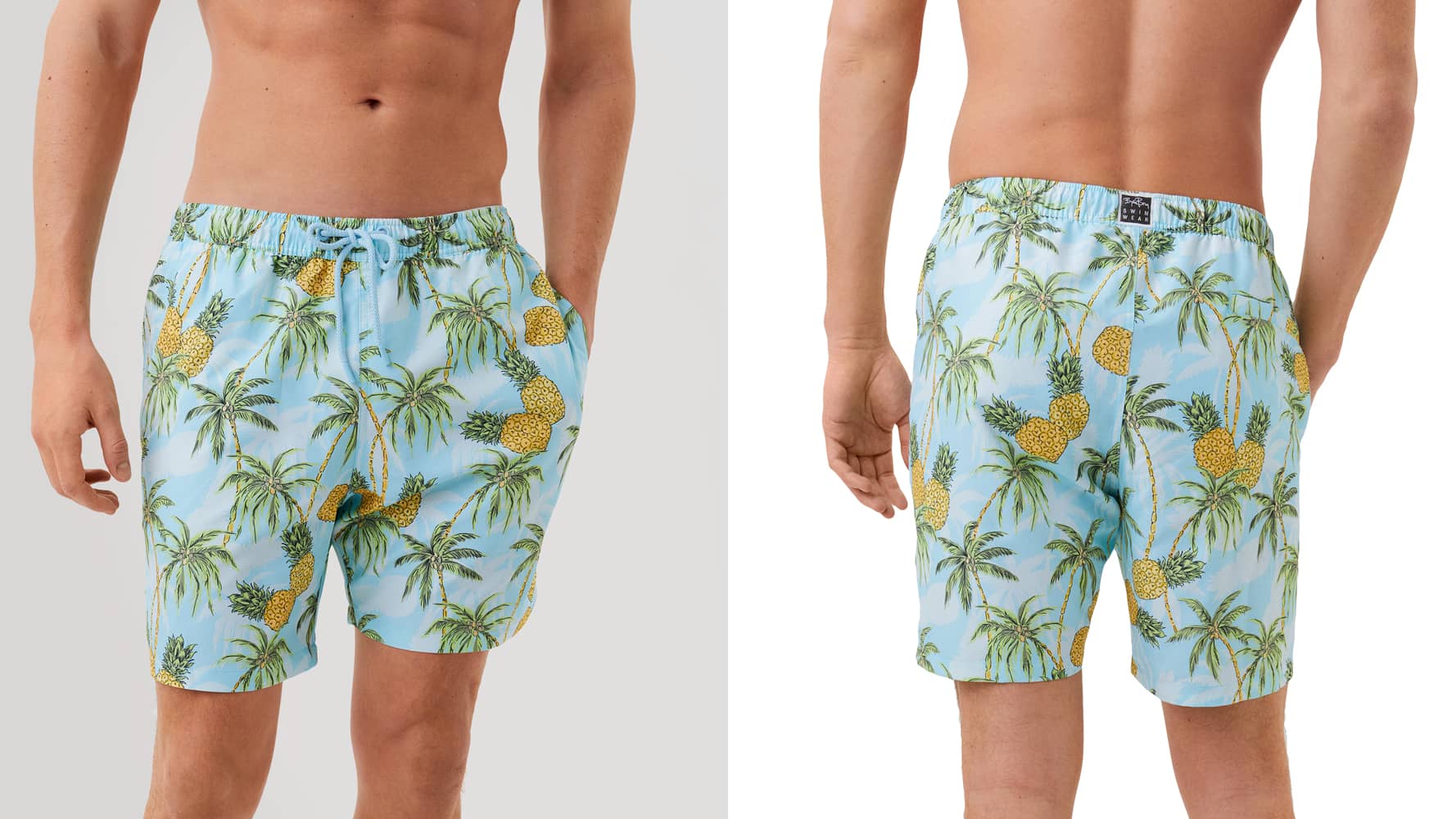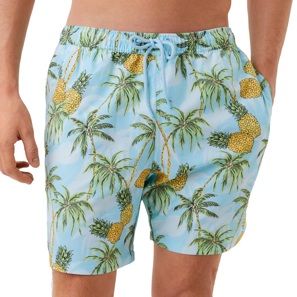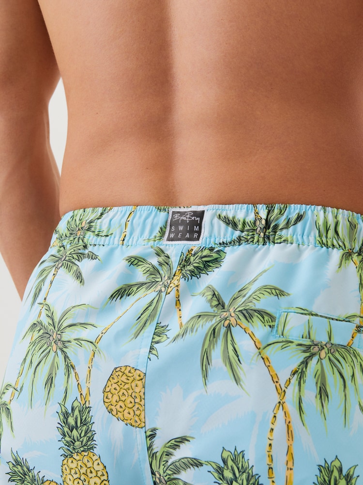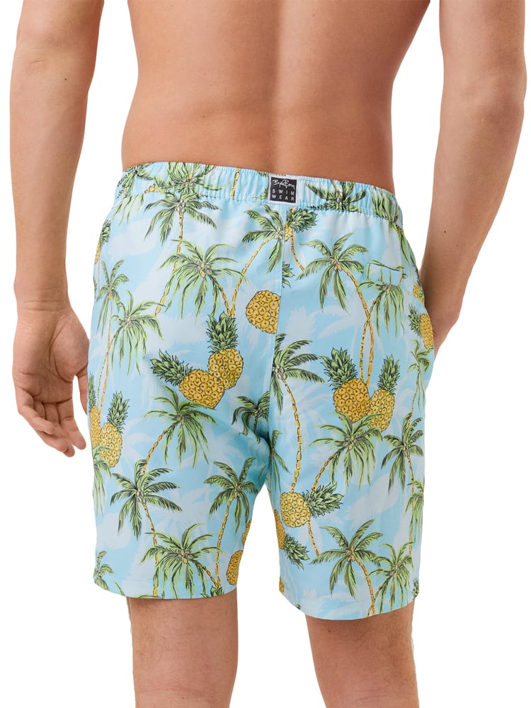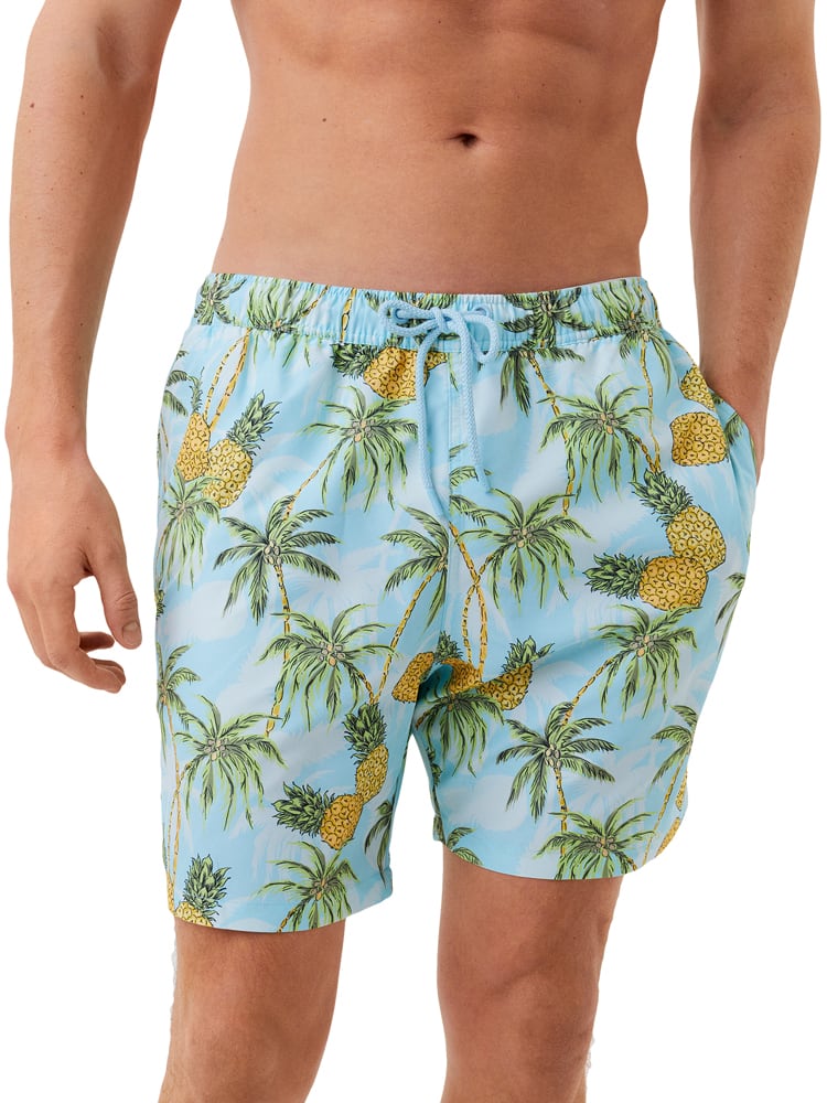 Een zomers zwemshort met een mooie print, gemaakt van 100% milieuvriendelijk gerecycled polyester. Polyester is waterafstotend waardoor deze snel droogt. Het zwemshort is uitgevoerd met een binnenbroek van mesh, heeft zakken aan de linker en rechterzijde en een achterzak met klittenband om je bezittingen veilig in te bewaren. Het zwemshort heeft een elastische tailleband van met trekkoord aan de buitenzijde om het beachshort perfect op maat te brengen.